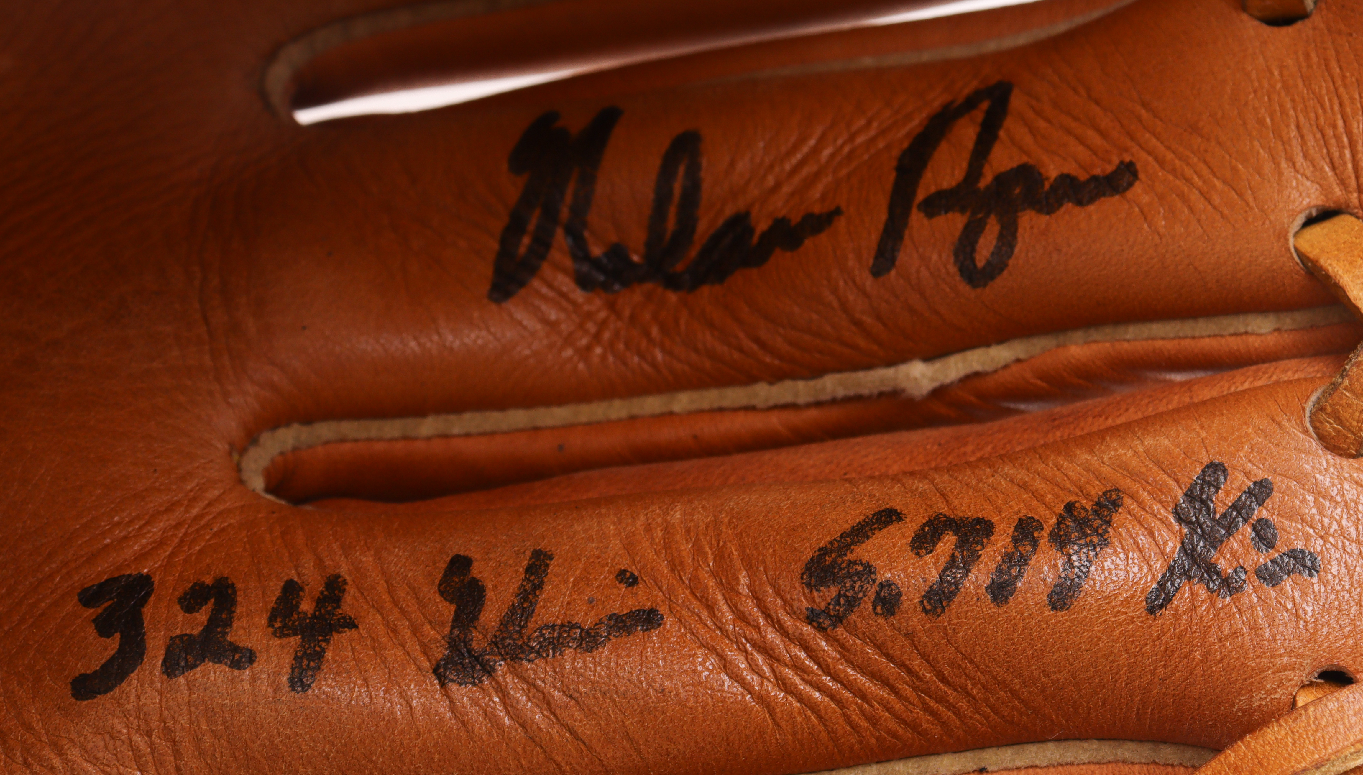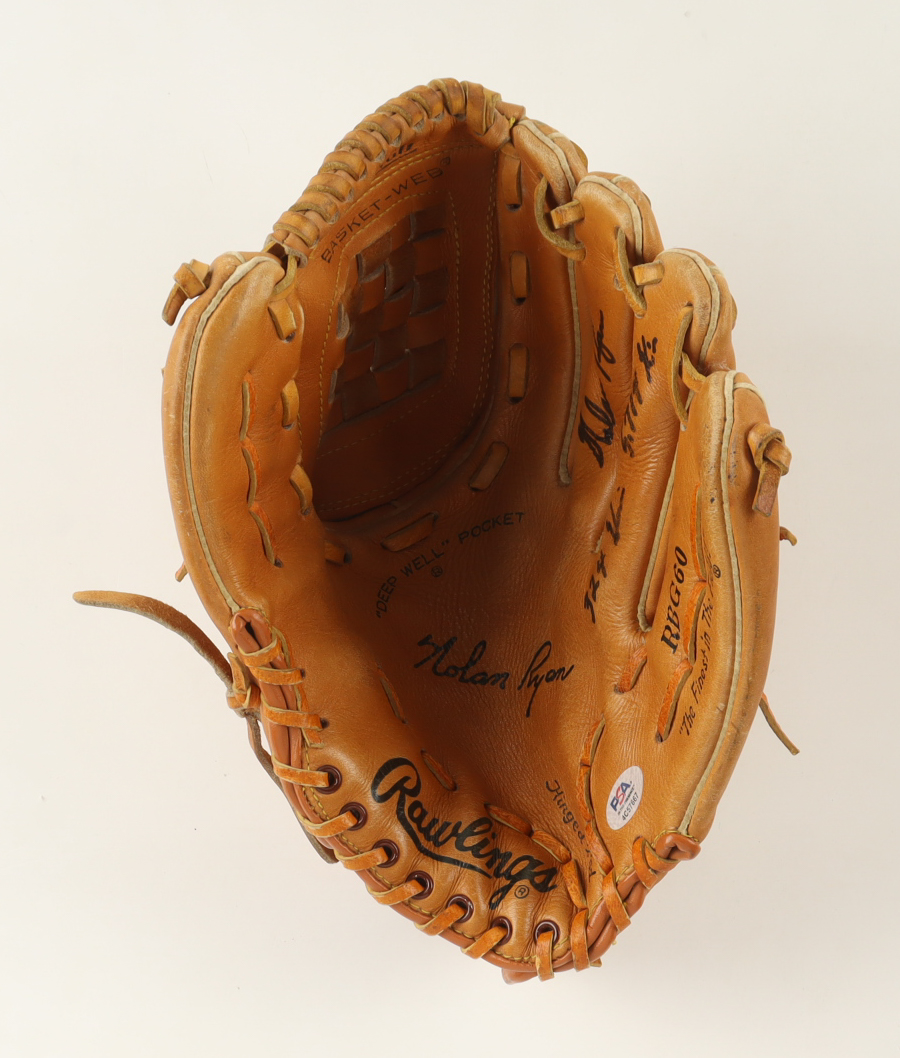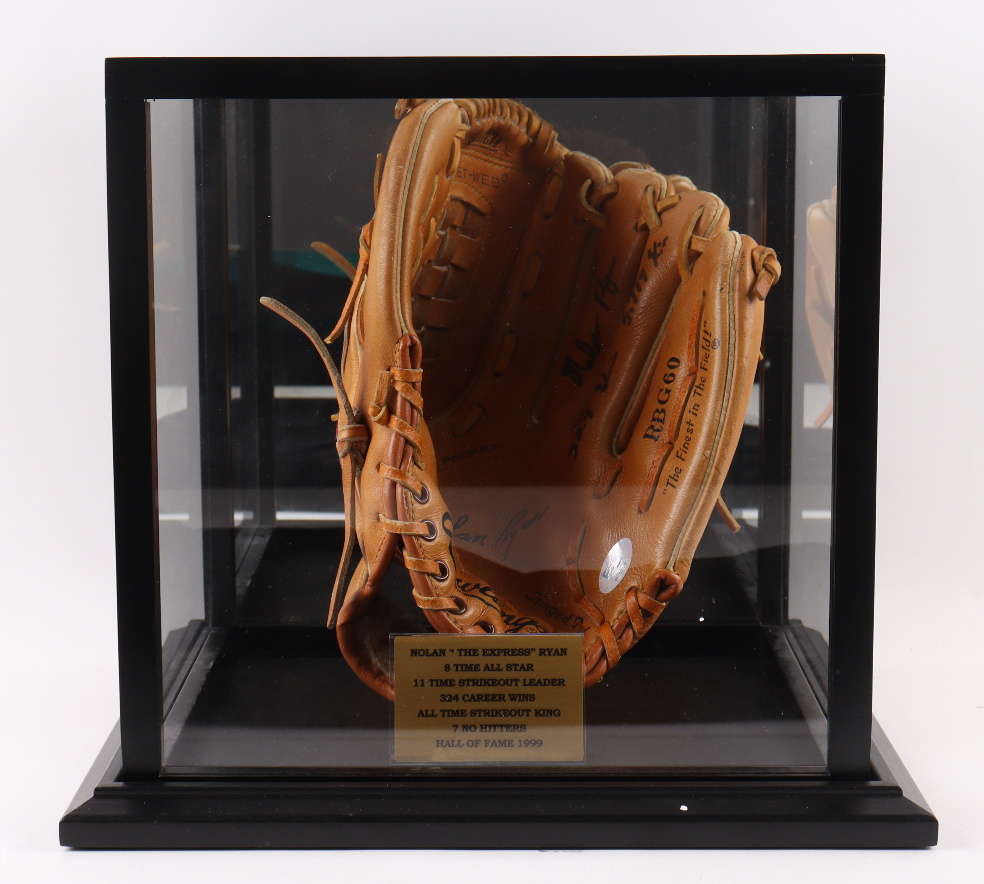 Rawlings RBG60 model baseball glove has been hand-signed and inscribed by Nolan Ryan (Houston Astros, HOF). The display case is included as shown.