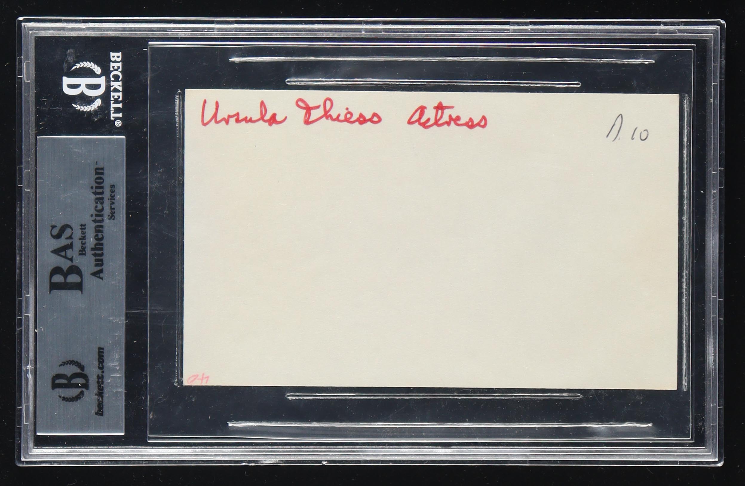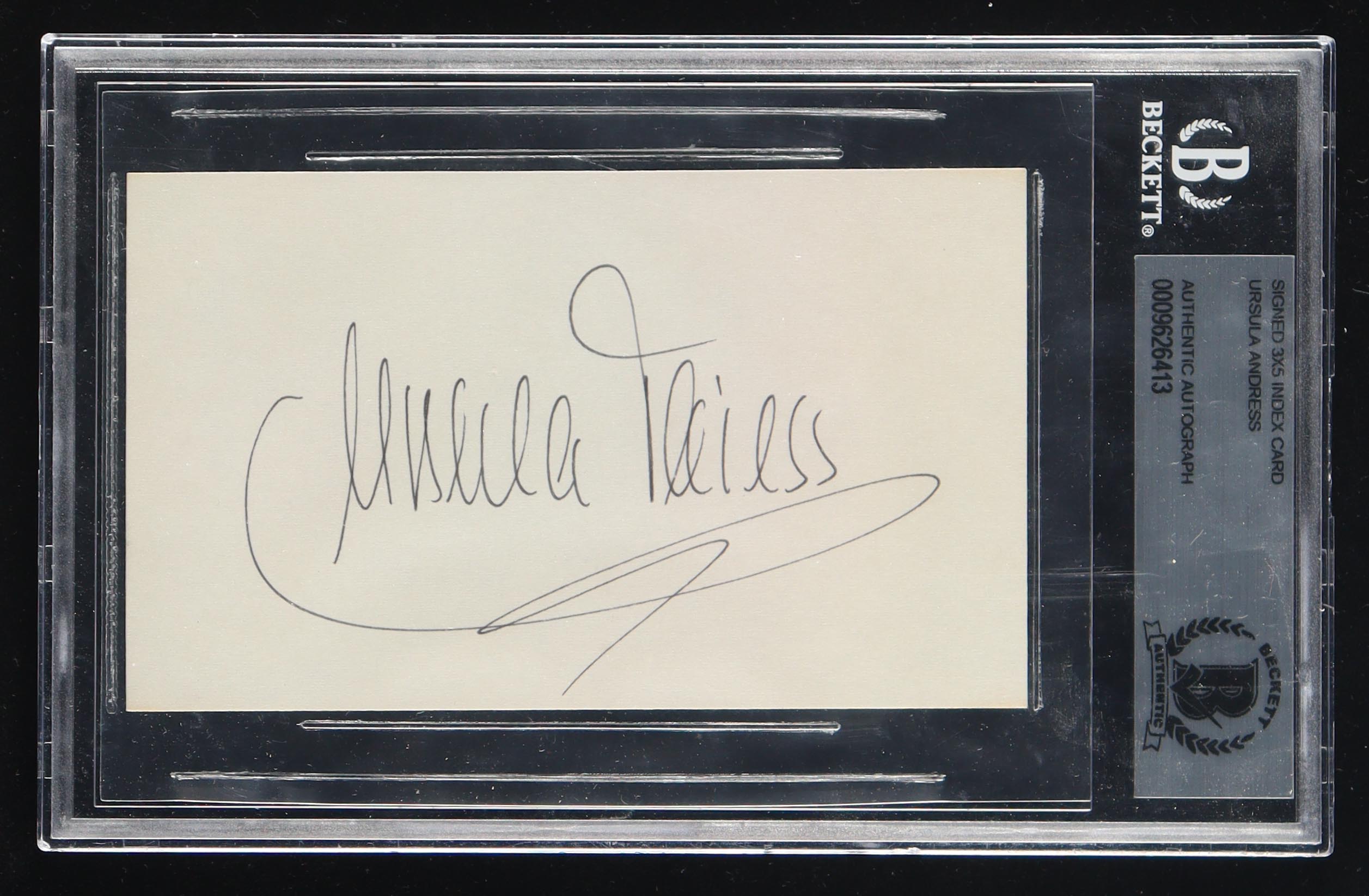Index card has been hand-signed by Ursula Andress.