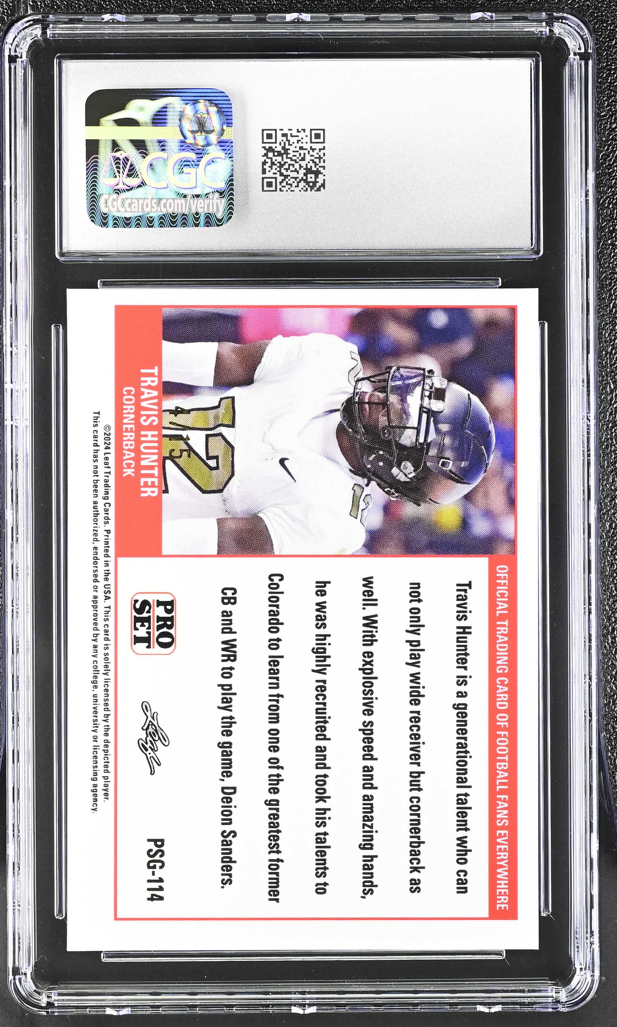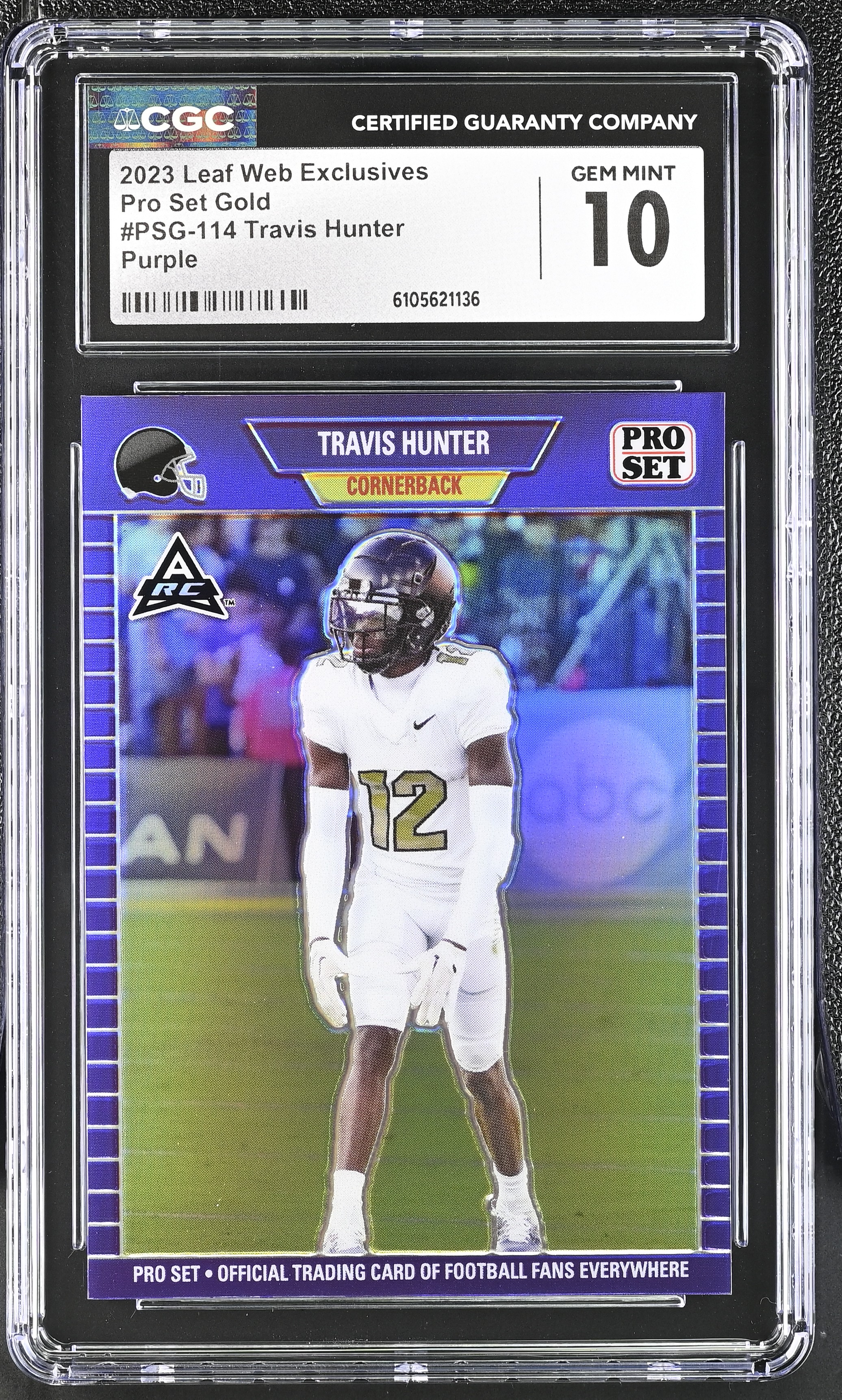 Travis Hunter 2023 Leaf Web Exclusives Pro Set Purple #PSG114 RC #4/15 (CGC 10)