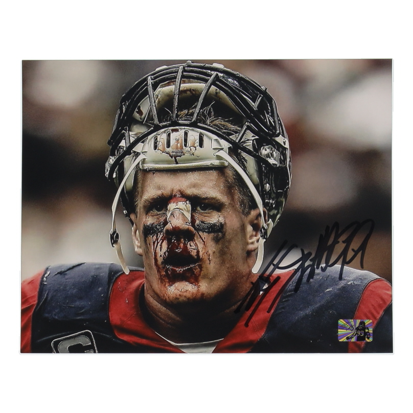 Photo measures approximately 8" x 10" in size. Hand-signed by J.J. Watt (Houston Texans). Please see photos for details regarding the condition of the item.