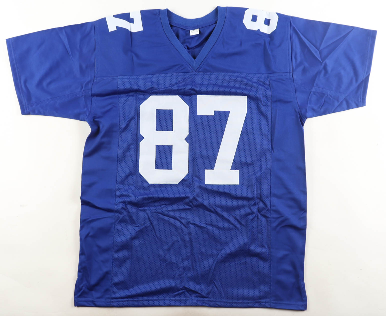 Custom jersey. Everything sewn on, size XL. Hand-signed by Sterling Shepard. Please note, glue is visible through the reverse number. See photos regarding the condition of the item.