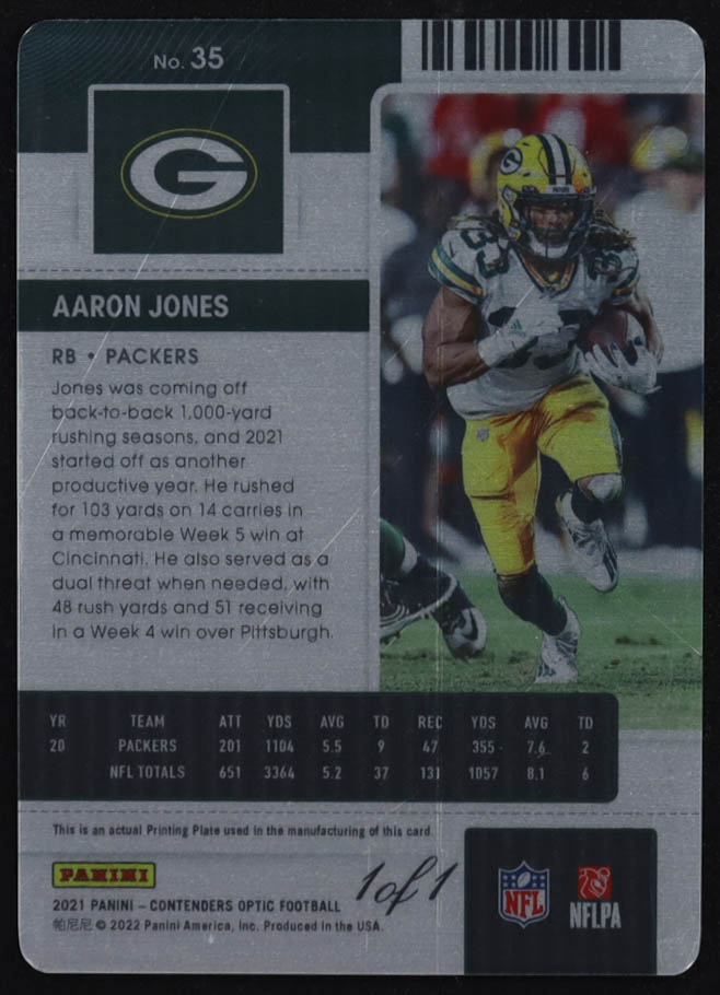Aaron Jones 2021 Panini Contenders Optic Printing Plates Black #35 #1/1