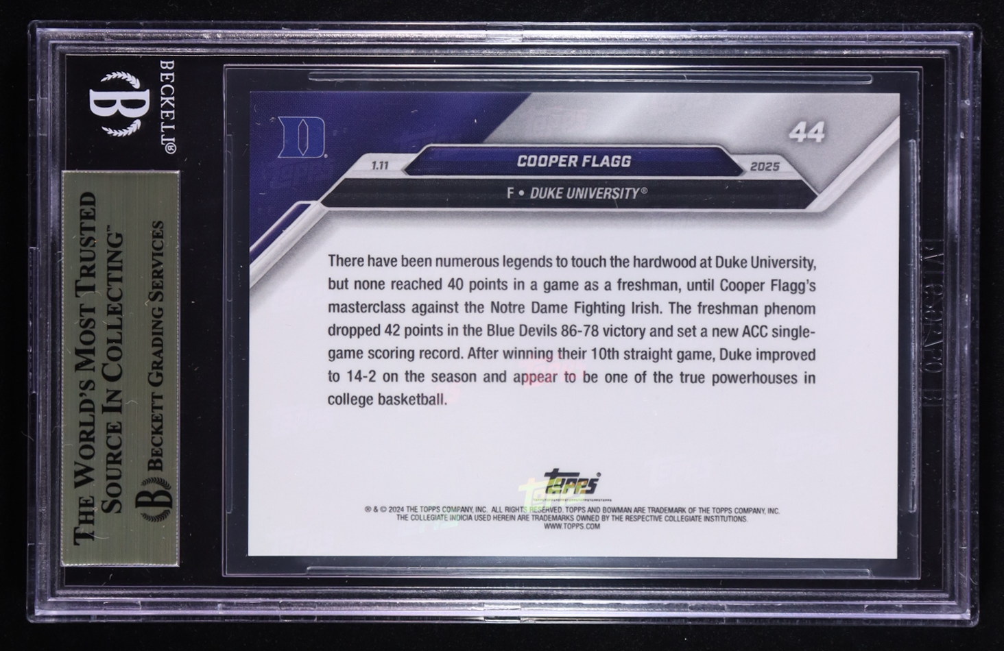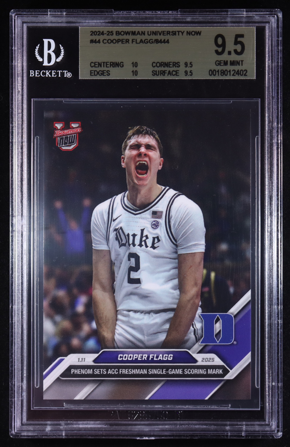 Cooper Flagg 2024-25 Bowman University Now #44 RC (BGS 9.5)