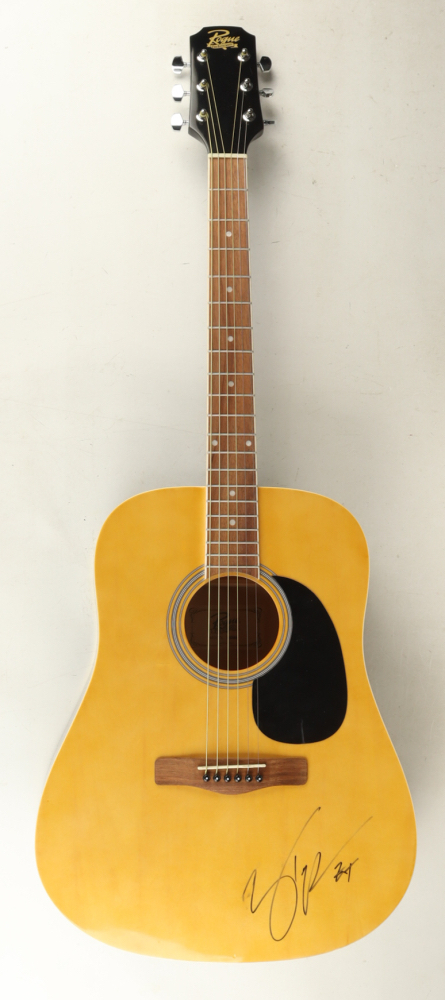 Rogue acoustic guitar measures 42" long. Hand-signed on a sticker adhered to the instrument by Zach Top.