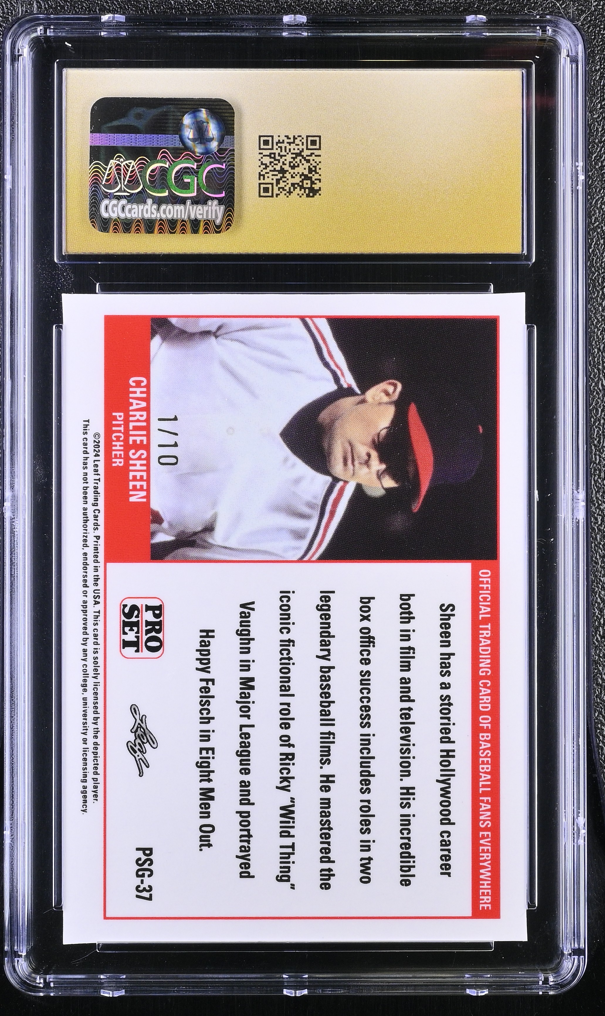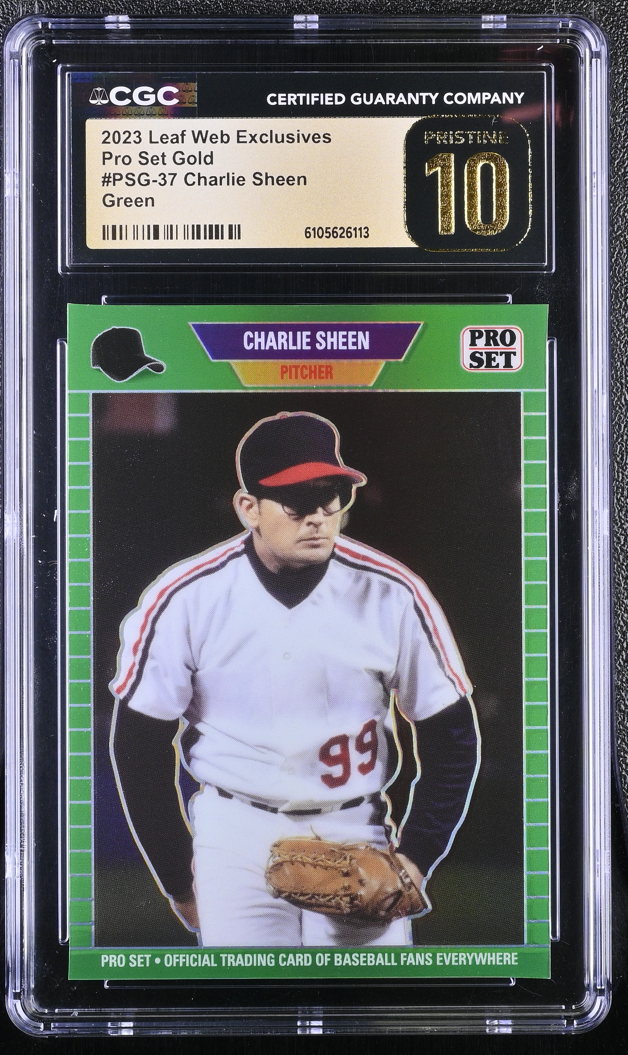 Charlie Sheen 2023 Leaf Web Exclusives Pro Set Green #PSG37 #1/10 (CGC 10 | Pristine Black Label)
