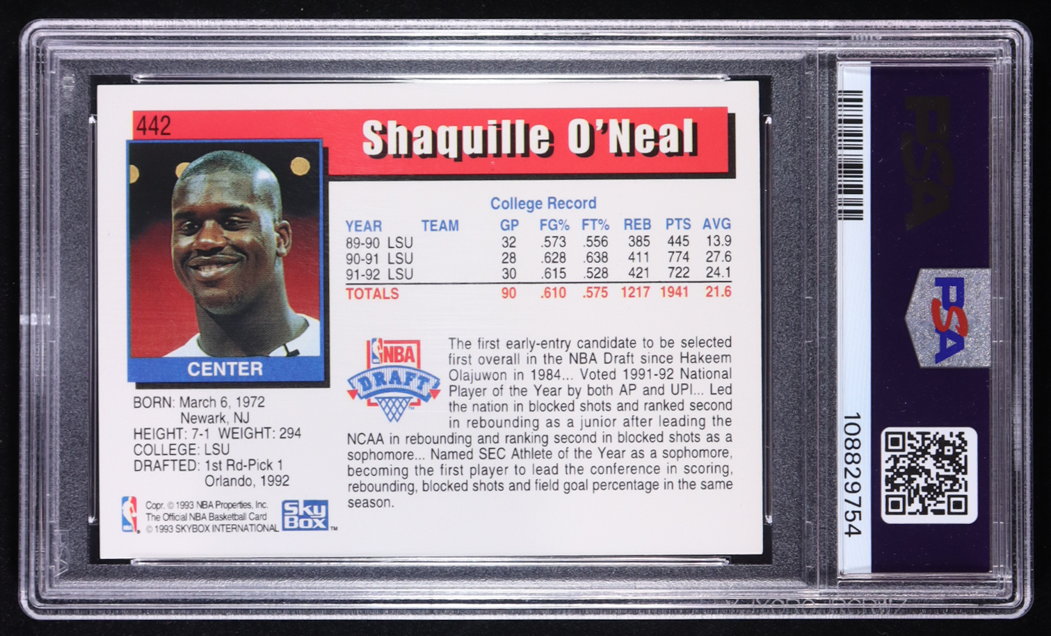 Shaquille O'Neal 1992 NBA Hoops #442 RC (PSA 9)