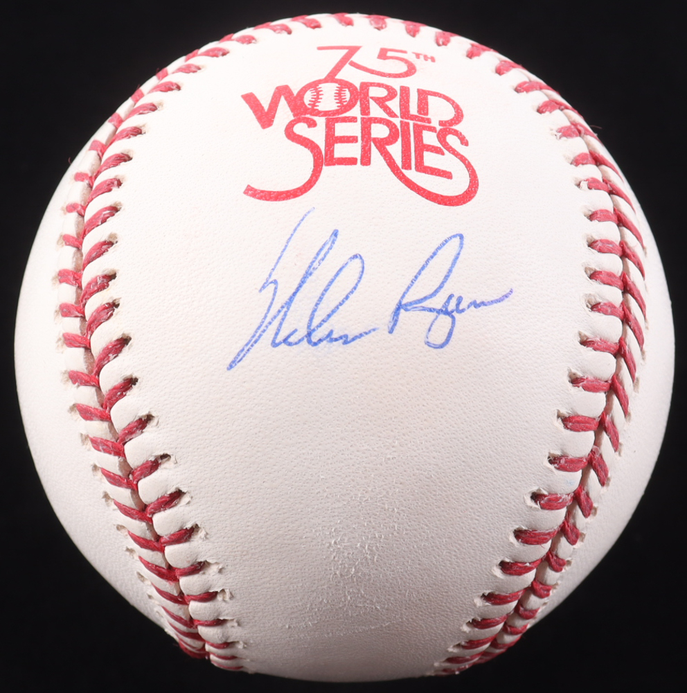 Rawlings 1978 World Series Official Baseball. Hand-signed by Nolan Ryan (Texas Rangers, HOF). Please note, ball has been naturally stained toned. Refer to photos regarding the condition of the item.