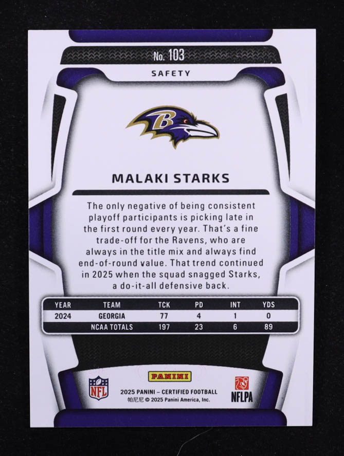 Malaki Starks 2025 Certified Mirror Purple #103 #261/299 RC