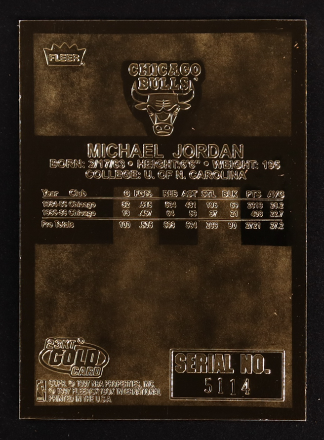 Michael Jordan 1997 Fleer Premier Feel the Game Signature Series 23KT Gold Card