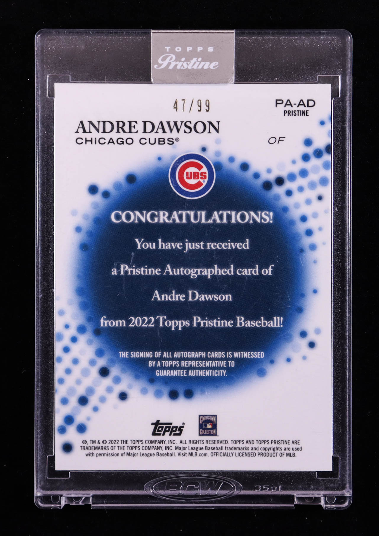 Andre Dawson 2022 Topps Pristine Autographs Pristine Refractors #PAAD #47/99