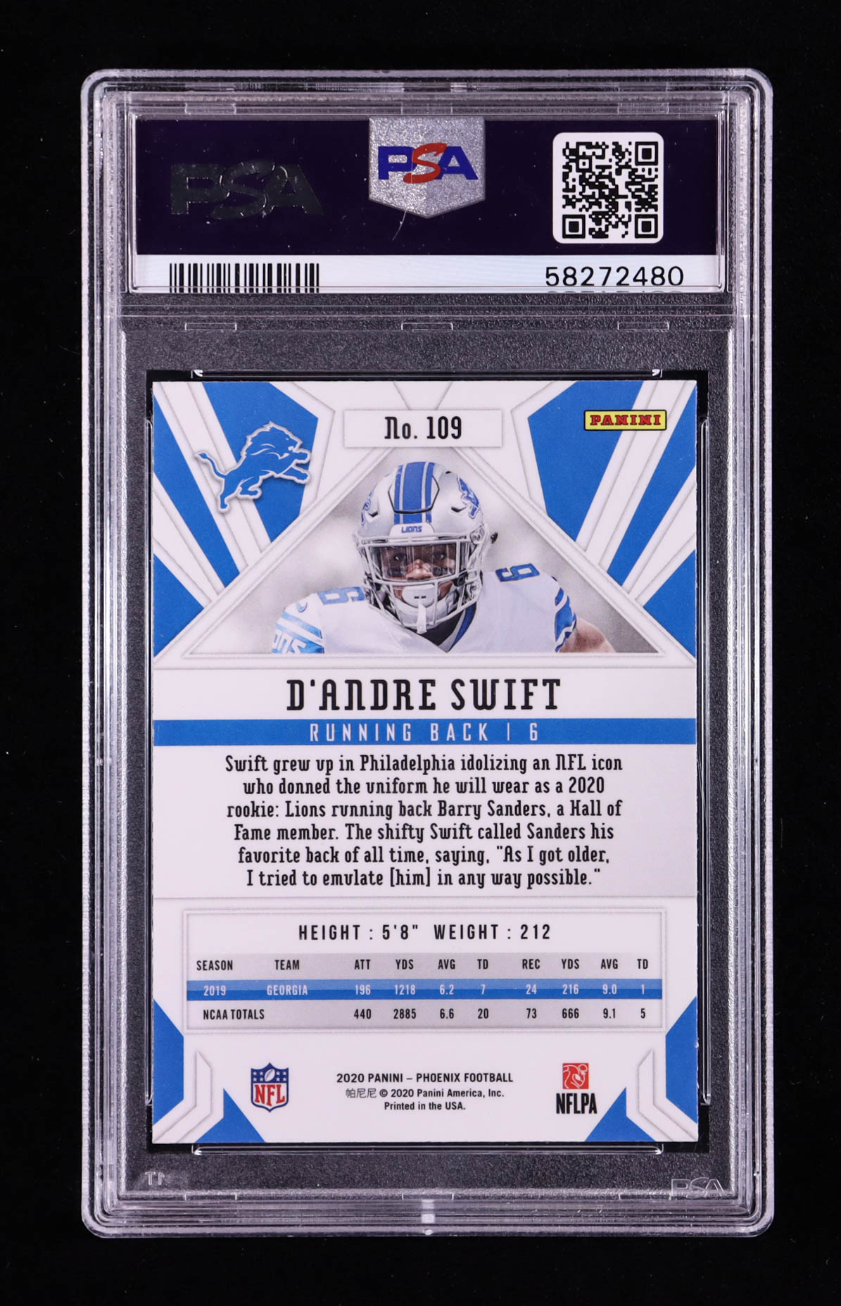 D'Andre Swift 2020 Panini Phoenix Fire Burst #109 RC (PSA 10)