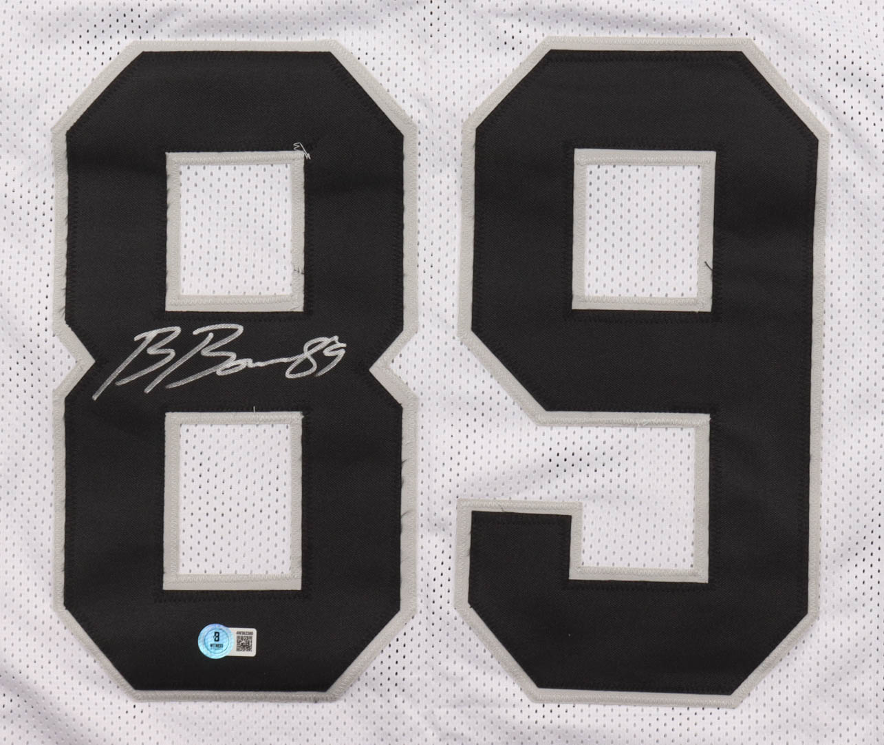 Custom jersey with everything sewn on, size XL. Hand-signed by Brock Bowers.