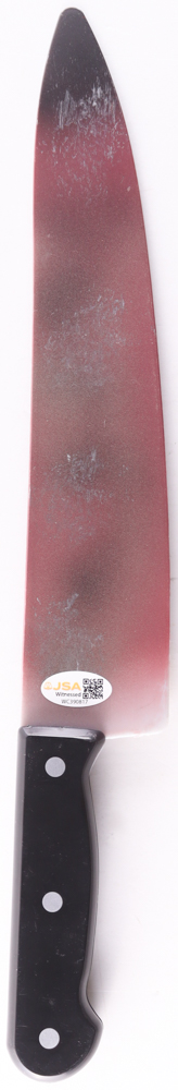 "Scream" plastic replica knife measures approximately 15" in length and has been hand-signed and inscribed by Matthew Lillard (Stu Macher) and Skeet Ulrich (Billy).