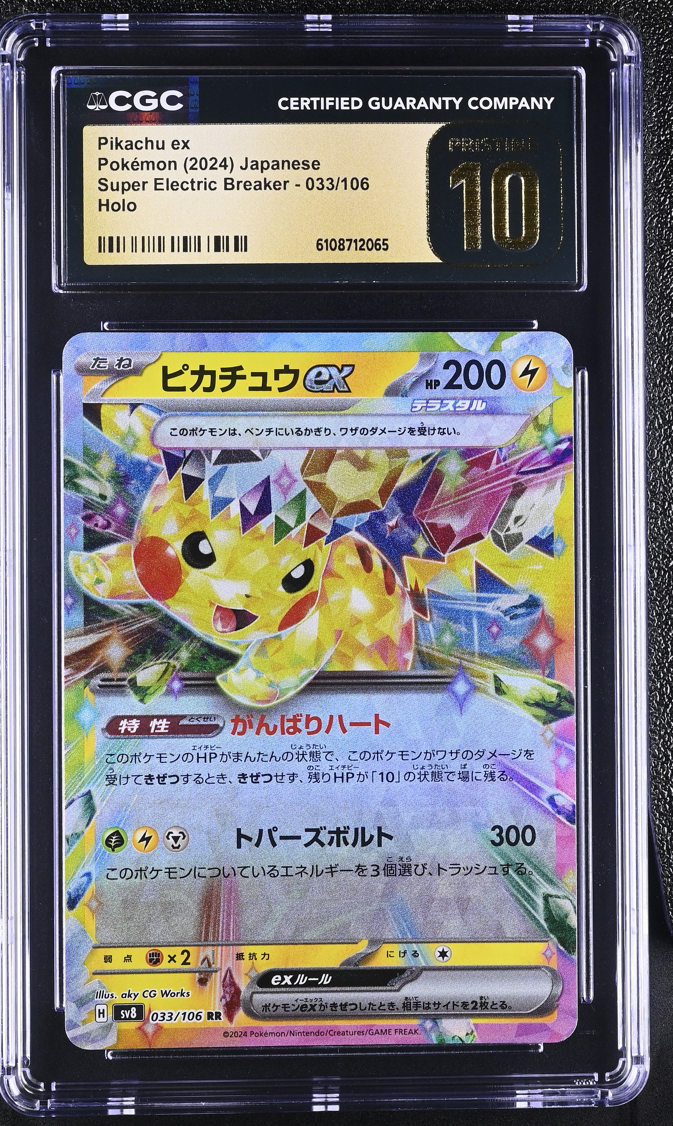 Pikachu Ex 2024 Pokemon Card Game Scarlet & Violet Super Electric Breaker Japanese #033 (CGC 10 | Black Label)