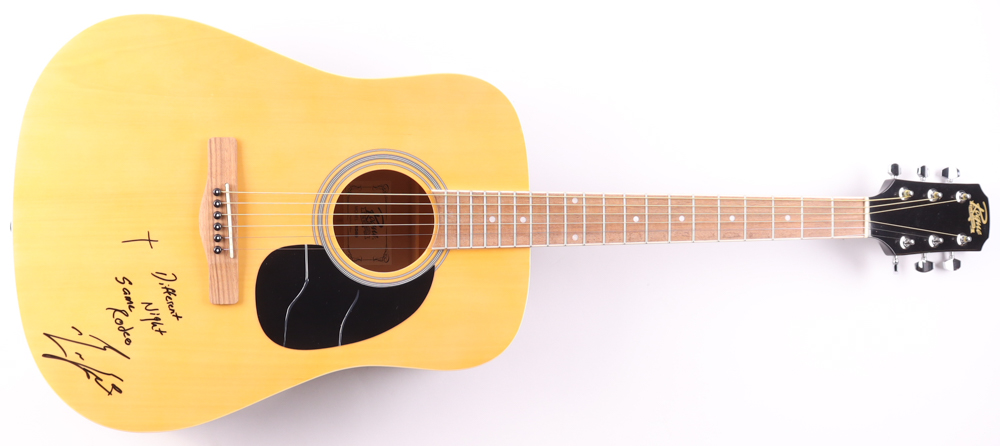 Rogue acoustic guitar measures 42" long. Hand-signed and inscribed on the base by Bailey Zimmerman.