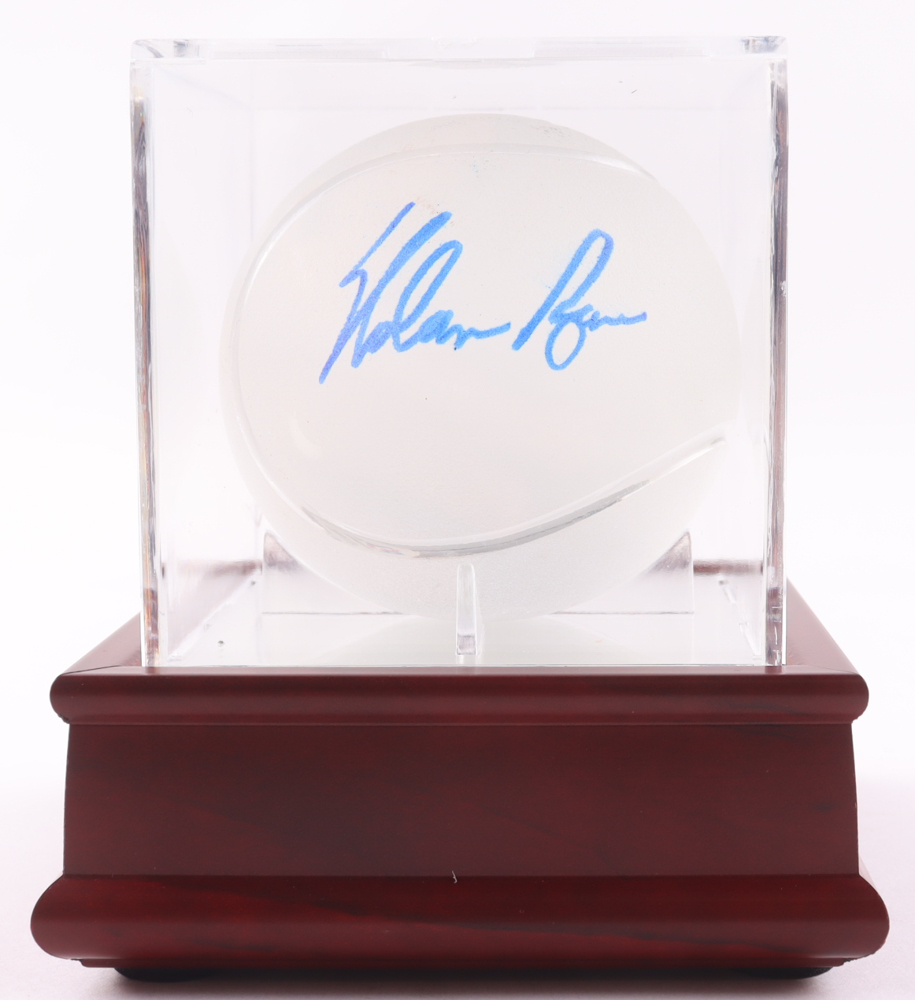 Nolan Ryan Signed Tiffany & Co. Lead Crystal Baseball with Wood & Glass Display Case (PSA)