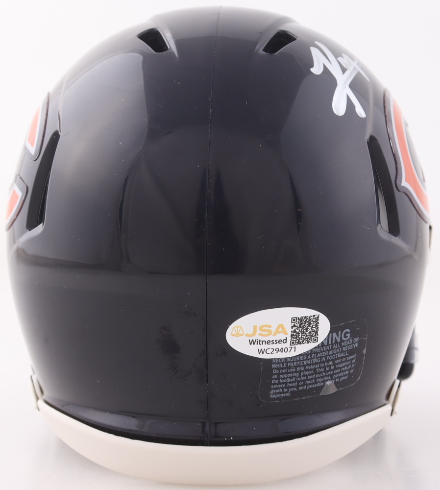 Riddell Chicago Bears Speed Mini Helmet. Hand-signed by Kyle Monangai and D'Andre Swift.