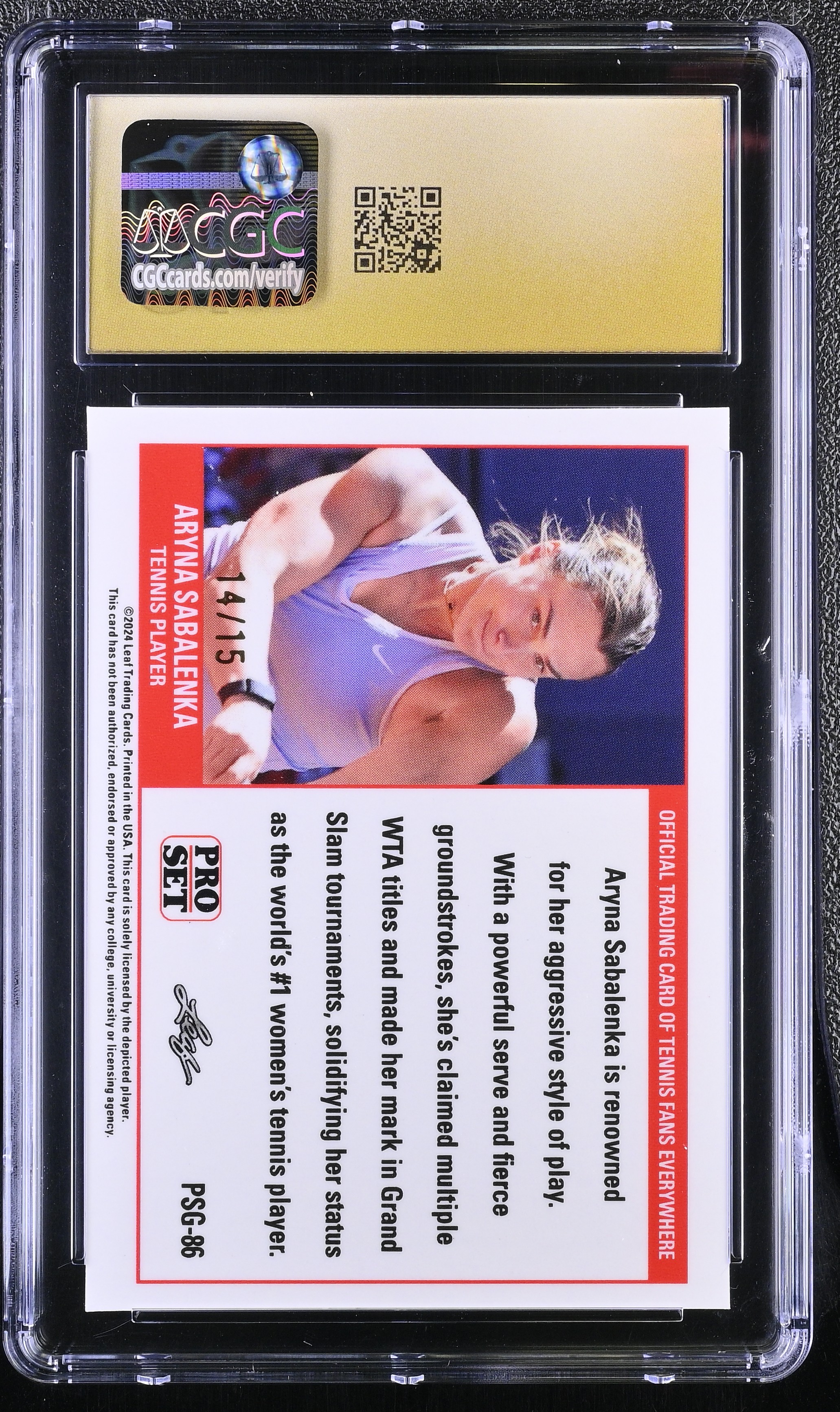 Aryna Sabalenka 2023 Leaf Web Exclusives Pro Set Purple #PSG86 #14/15 (CGC 10 | Pristine Black Label)