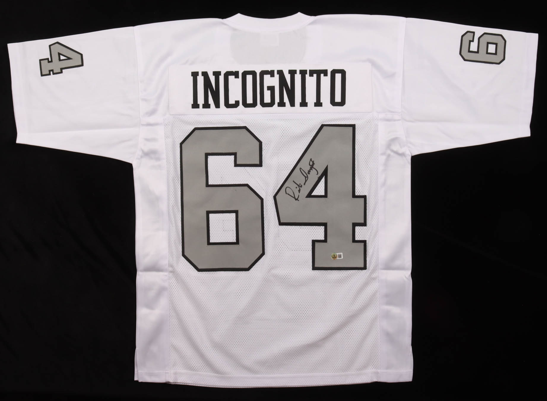 Custom jersey with everything sewn on, size XL. Hand-signed by Richie Incognito.