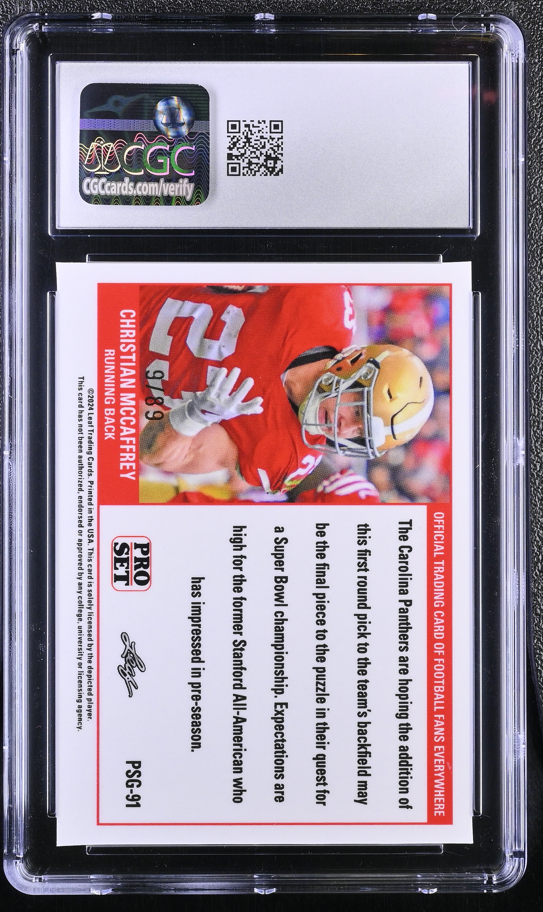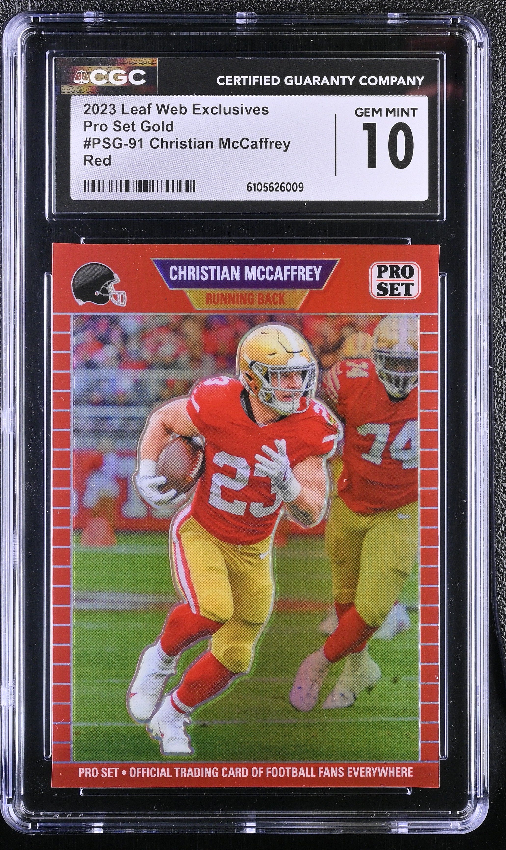 Christian McCaffrey 2023 Leaf Web Exclusives Pro Set Red #PSG91 #9/89 (CGC 10)