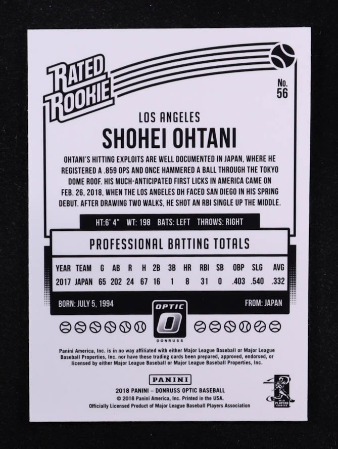 Shohei Ohtani 2018 Donruss Optic #56 RR RC
