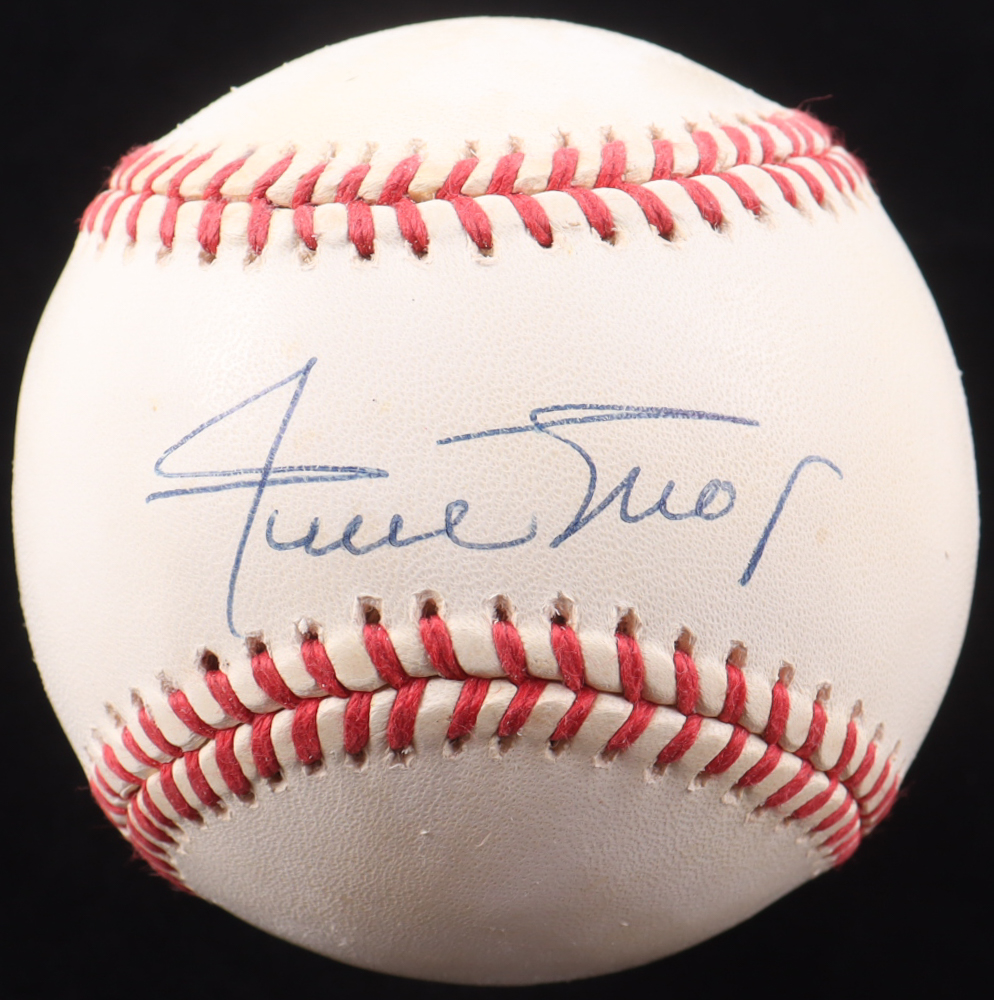 Rawlings Official National League Baseball. Hand-signed by Willie Mays (D. 2024, San Francisco Giants, HOF). Please note, ball has been naturally stained toned. Refer to photos regarding the condition of the item.