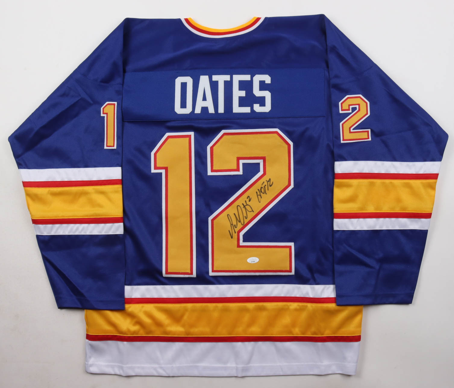 Custom jersey with everything sewn on, size XL. Hand-signed and inscribed by Adam Oates (HOF).