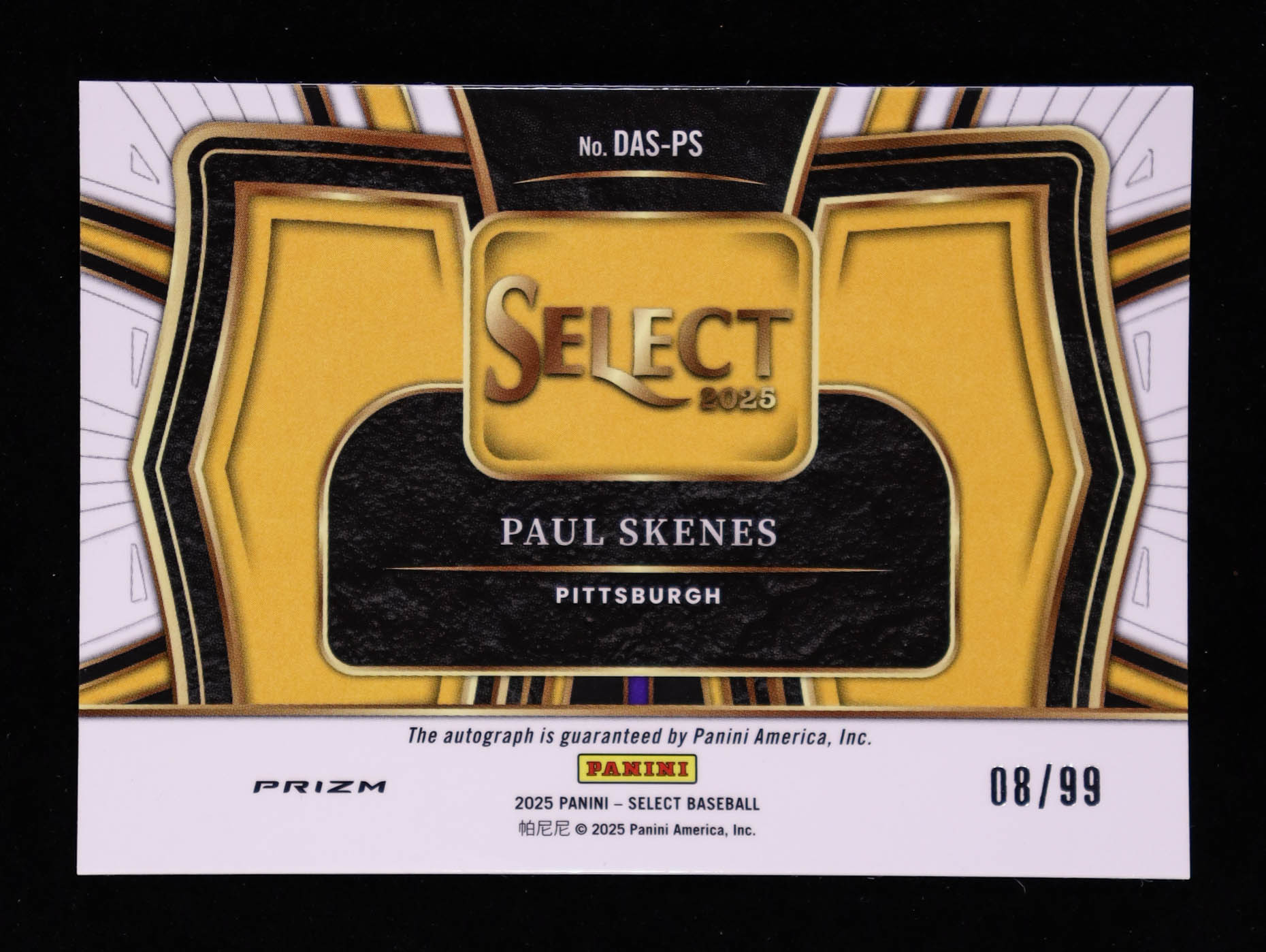 Paul Skenes 2025 Select Diamond Action Signatures Red Prizms #13 #08/99