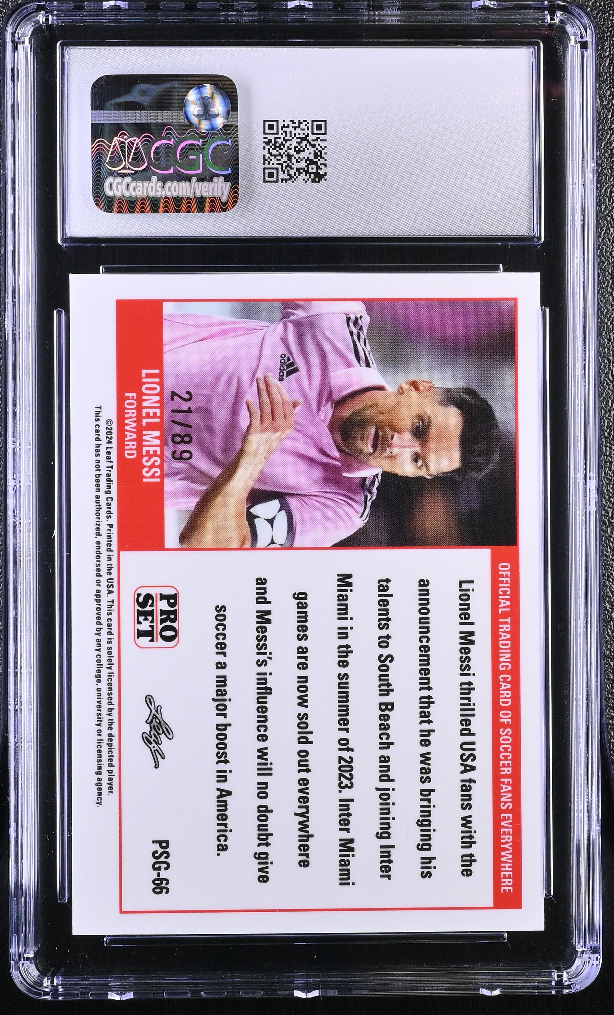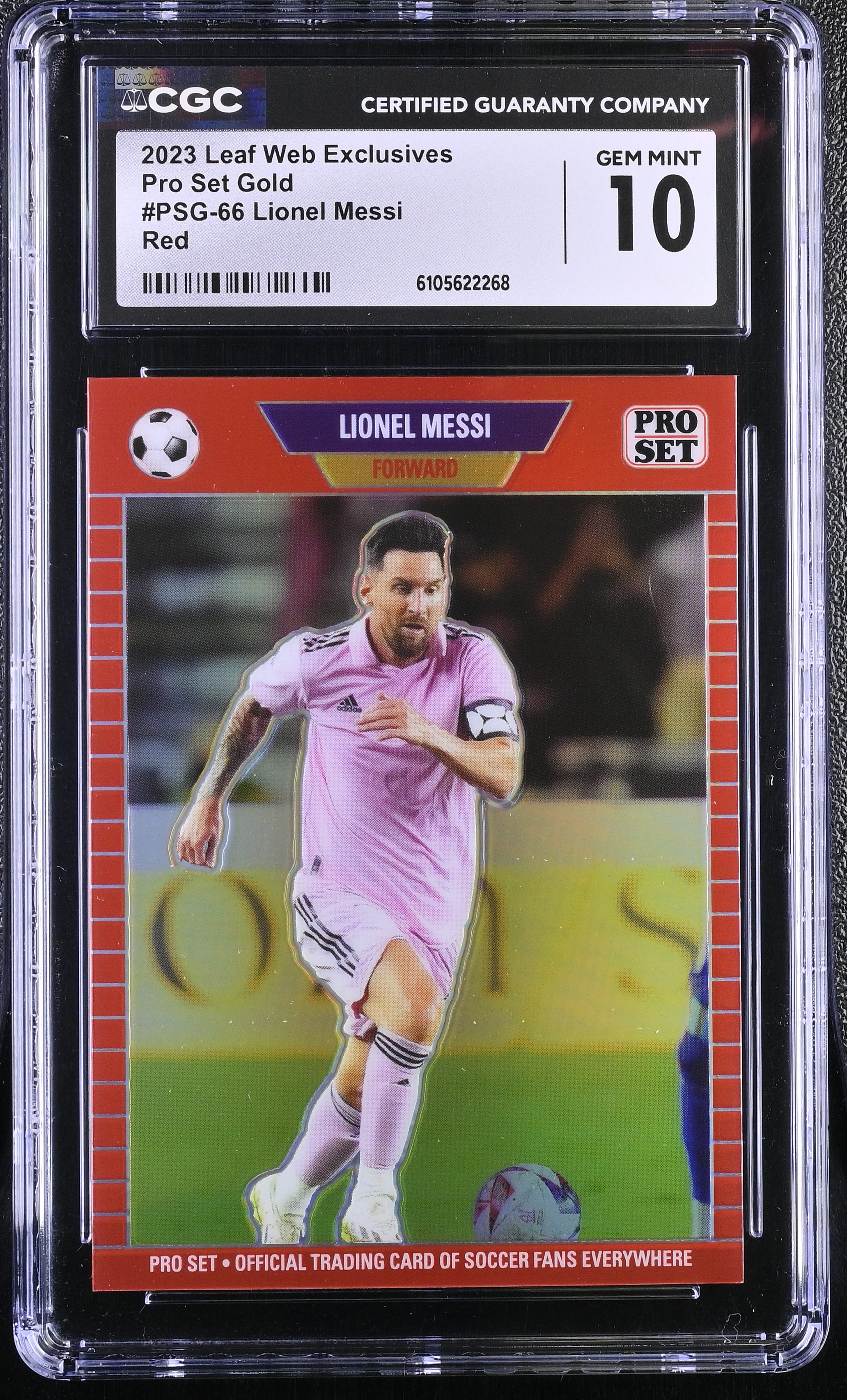 Lionel Messi 2023 Leaf Web Exclusives Pro Set Red #PSG66 #21/89 (CGC 10)