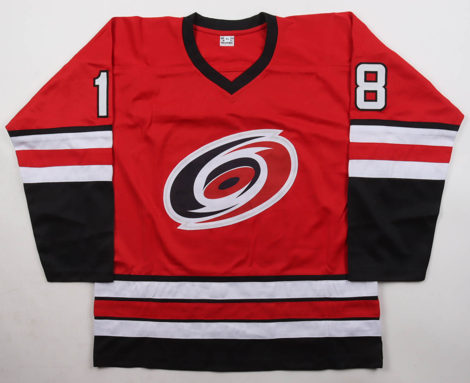Custom jersey. Everything is sewn on, size XL. Hand-signed and inscribed by Mark Recchi (HOF).