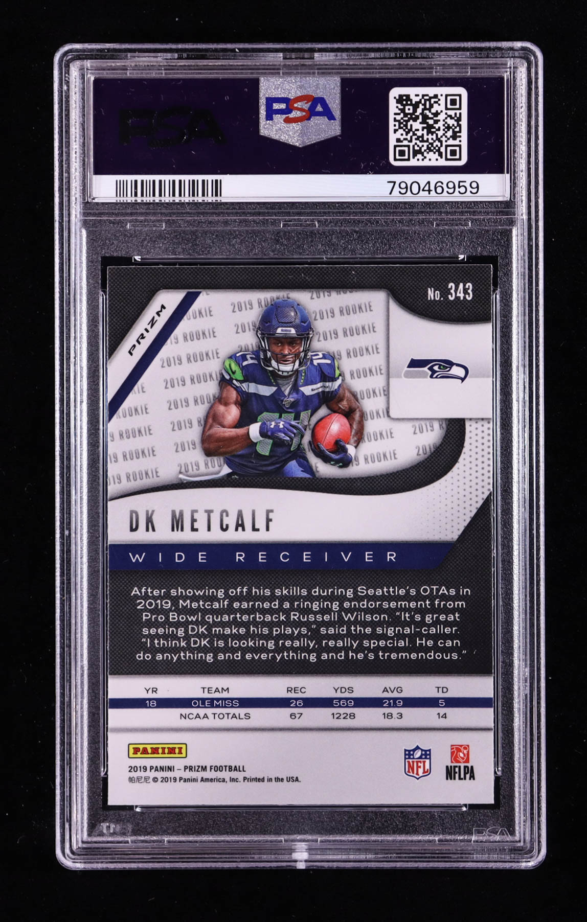 D.K. Metcalf 2019 Panini Prizm Prizms Lazer #343 RC (PSA 10)