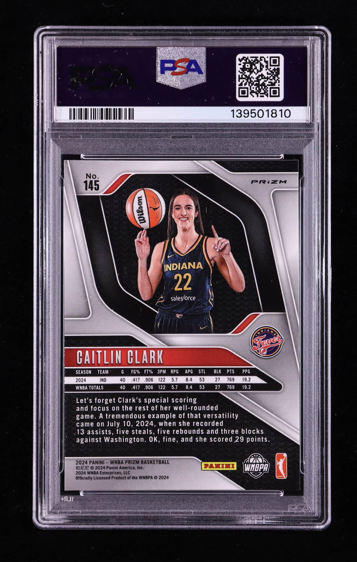Caitlin Clark 2024 Panini Prizm WNBA Prizms Blue Velocity #145 (PSA 9)
