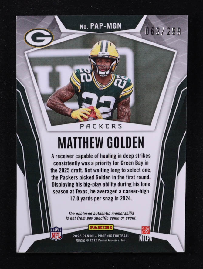 Matthew Golden 2025 Panini Phoenix Pandora Patches #7 #063/299 RC