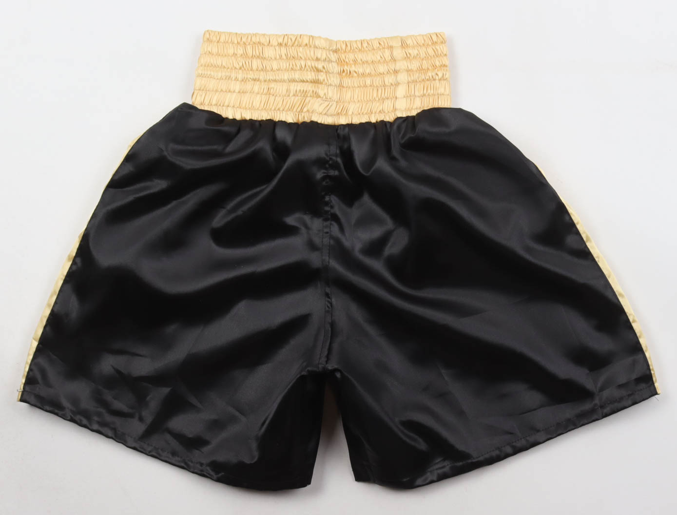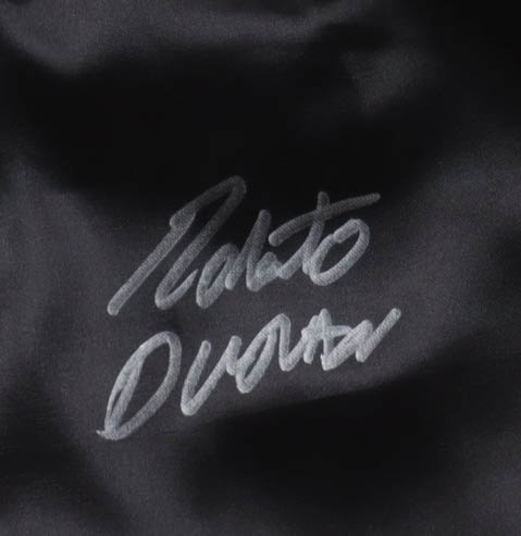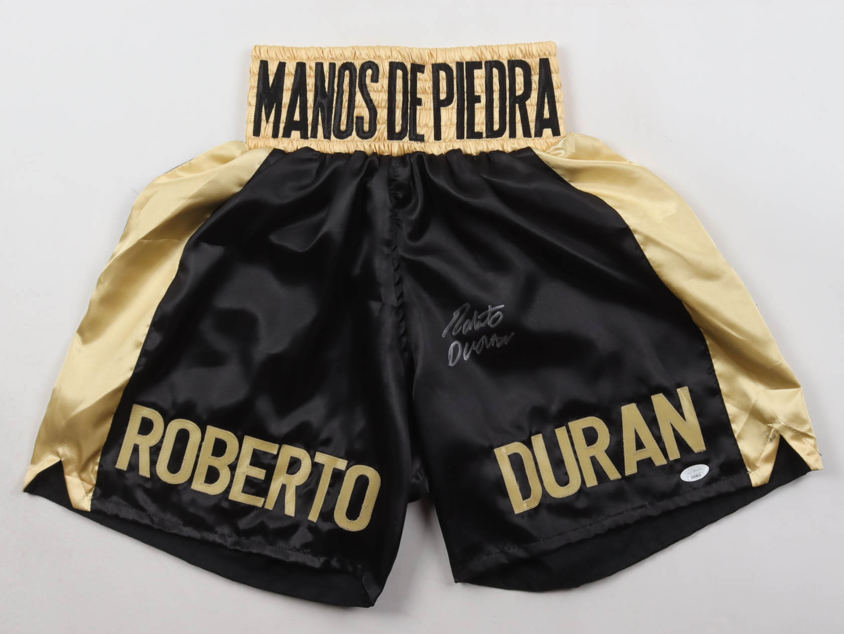 Custom boxing shorts, size L, have been hand-signed by Roberto Duran (HOF).