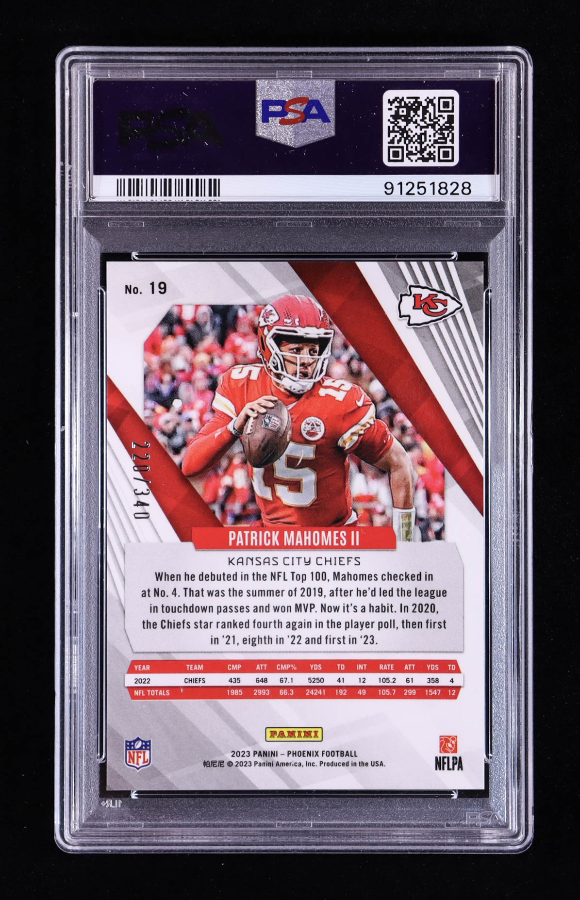 Patrick Mahomes II 2023 Panini Phoenix Fire Burst #19 #220/340 (PSA 10)
