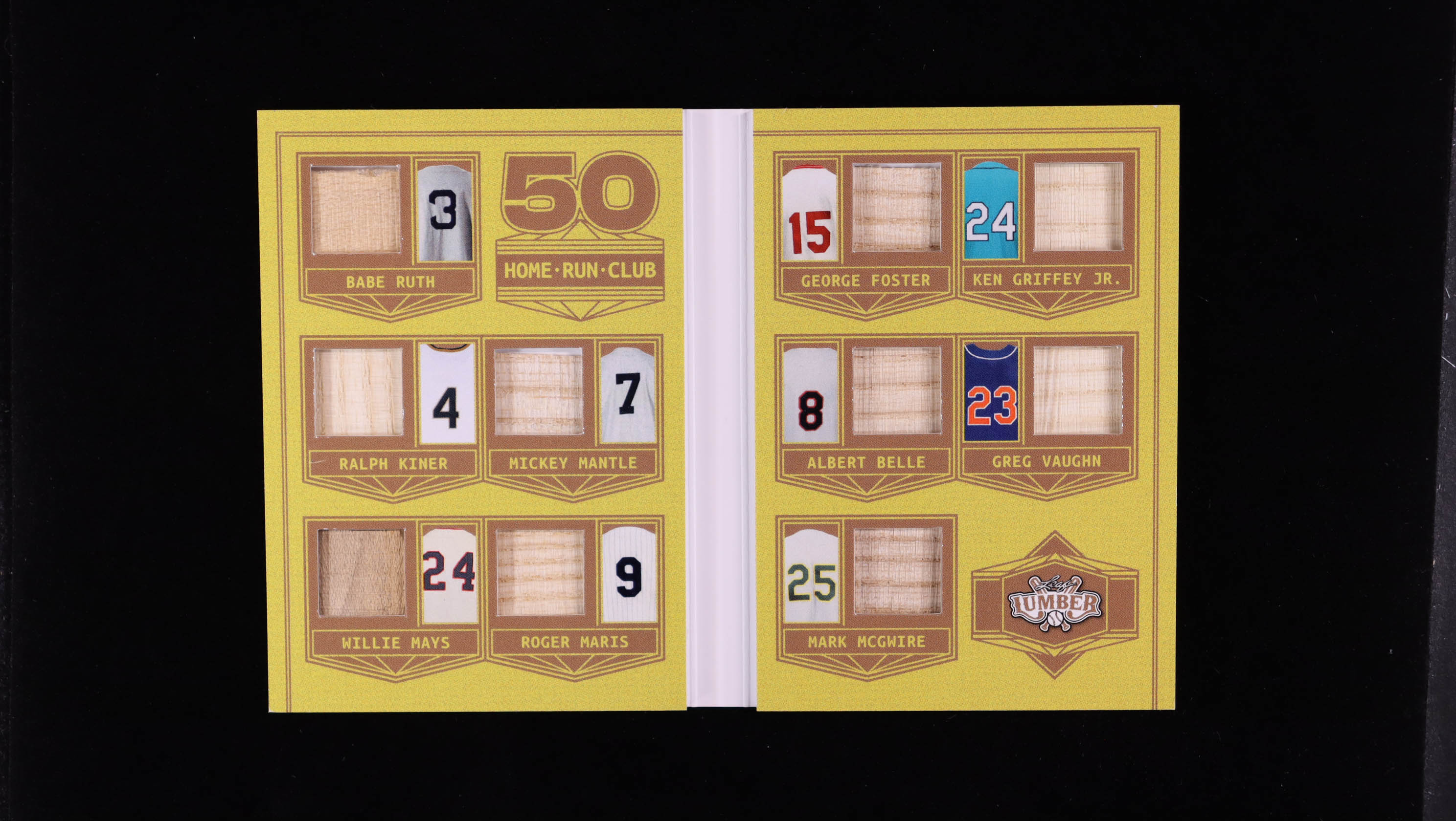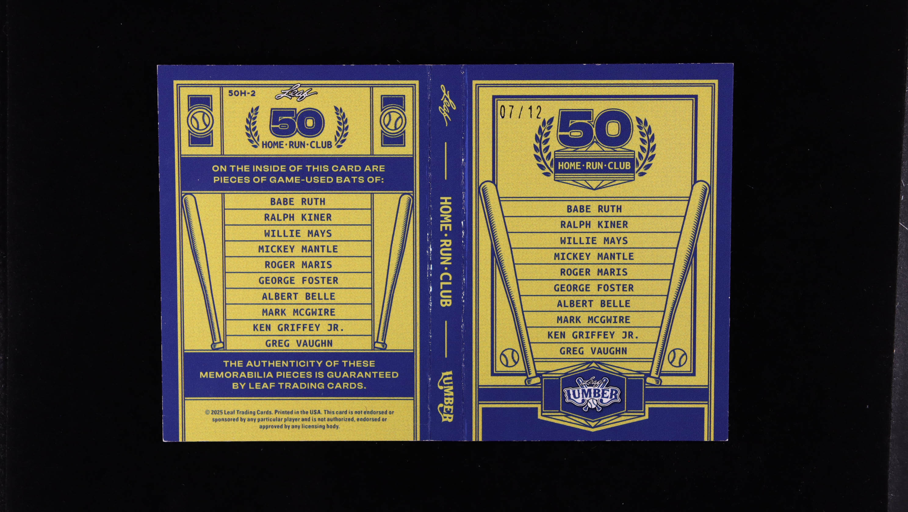 2025 Leaf Lumber 50 Home Run Club #50H2 Babe Ruth / Ralph Kiner / Willie Mays / Mickey Mantle / Roger Maris / George Foster / Albert Belle / Mark McGwire / Ken Griffey Jr. / Greg Vaughn #07/12