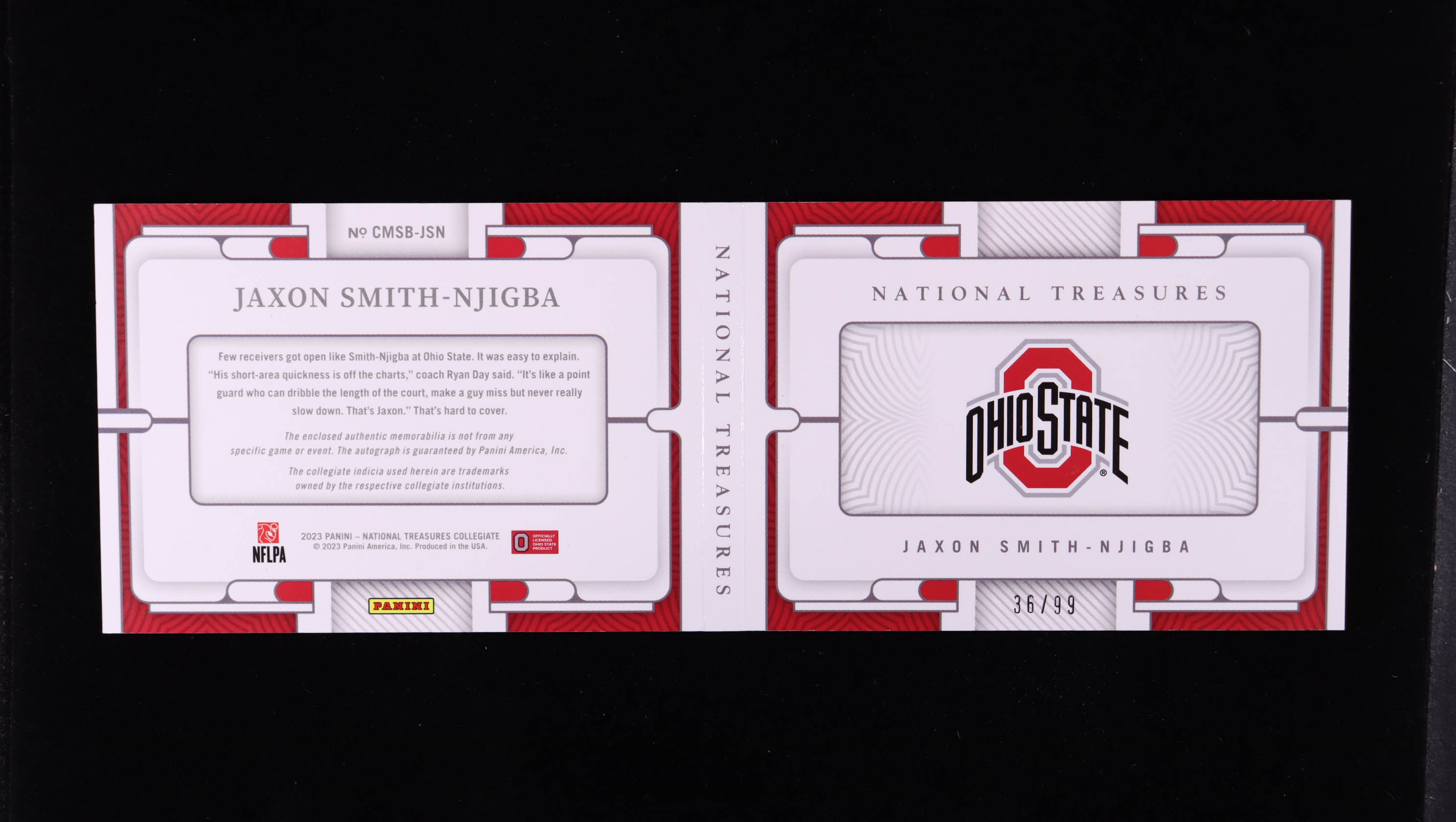 Jaxon Smith-Njigba 2023 Panini National Treasures Collegiate College Materials Signature Booklet #7 #36/99 RC