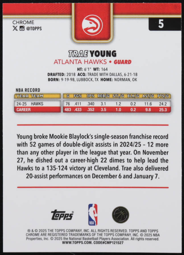 Trae Young 2025-26 Topps Chrome #5