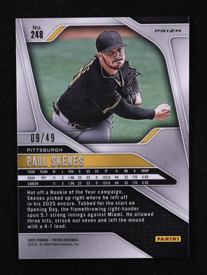 Paul Skenes 2025 Panini Prizm Prizms Orange Wave #248 #09/49
