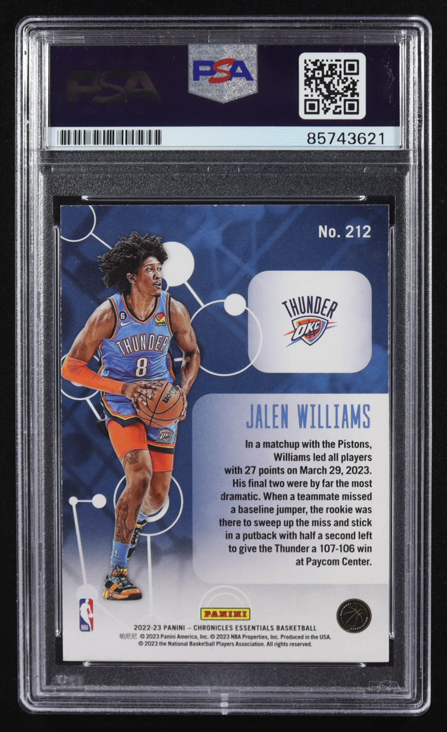 Jalen Williams Signed 2022-23 Panini Prizm Chronicles Essential #212 RC (PSA)