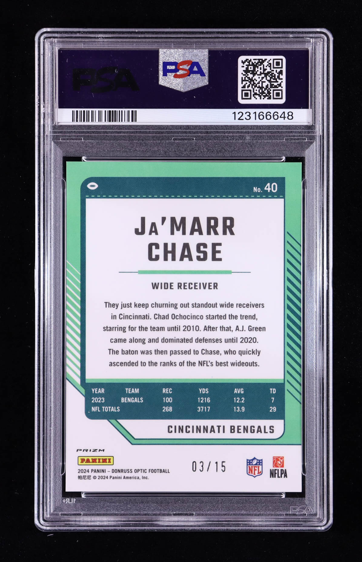 Ja'Marr Chase 2024 Donruss Optic Ice #40 #03/15 (PSA 9)