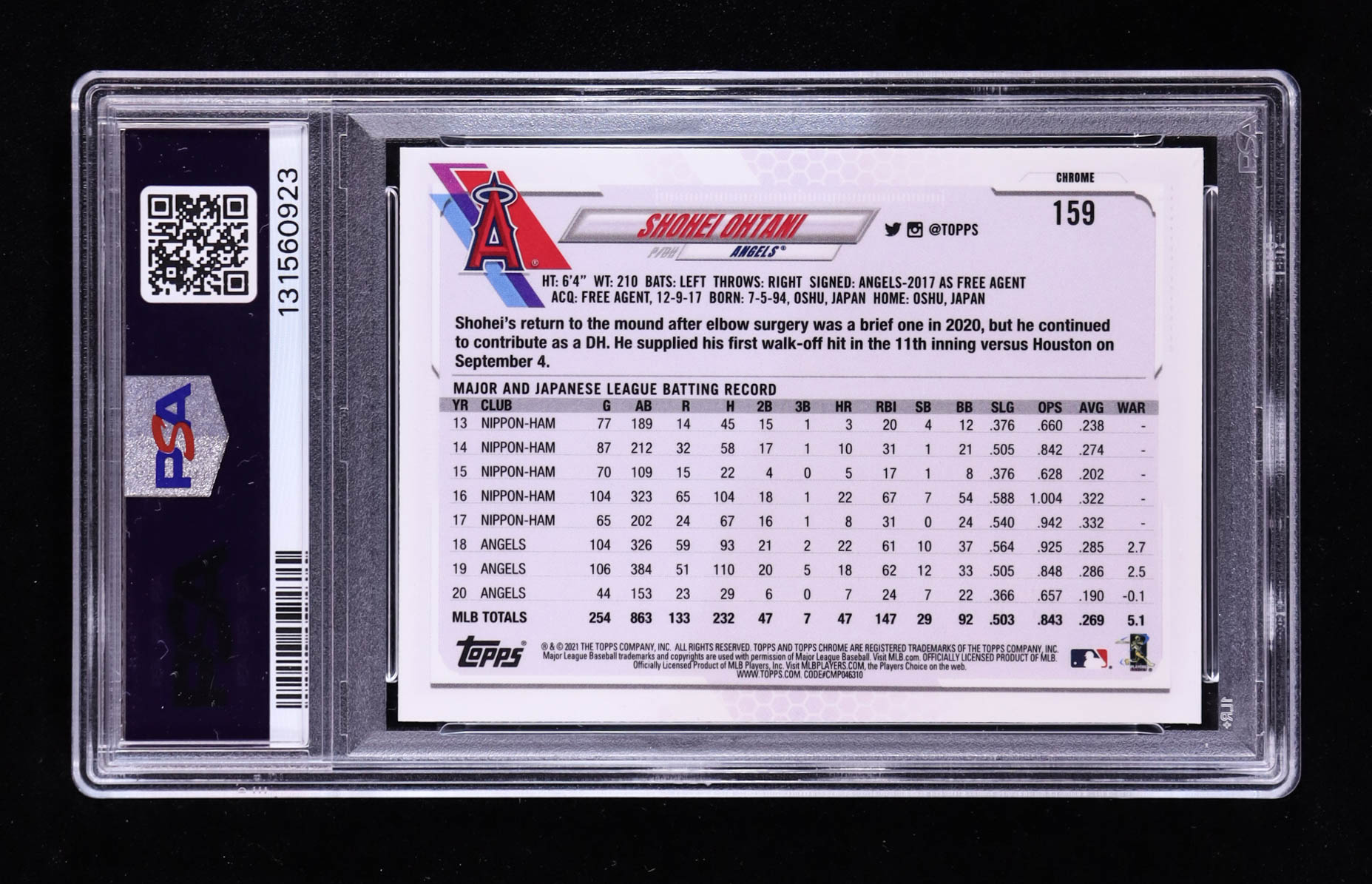 Shohei Ohtani 2021 Topps Chrome Prism Refractors #159 (PSA 9)