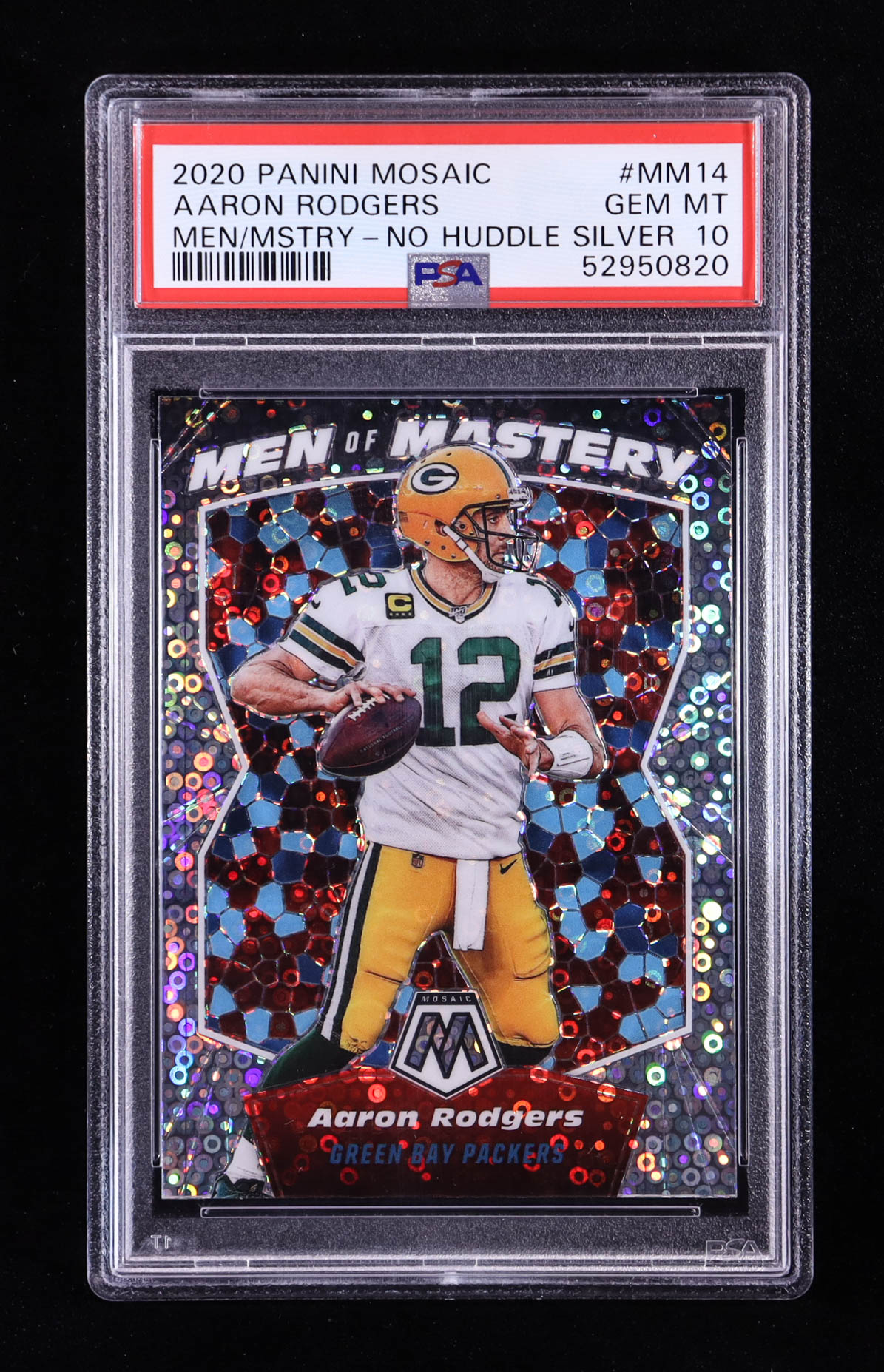 Aaron Rodgers 2020 Panini Mosaic Men of Mastery No Huddle Silver #MM14 (PSA 10)