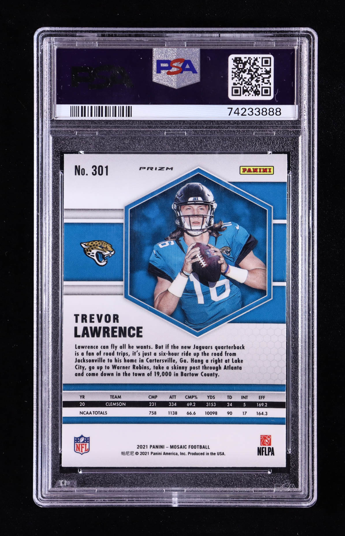 Trevor Lawrence 2021 Panini Mosaic Mosaic Reactive Blue #301 RC (PSA 10)