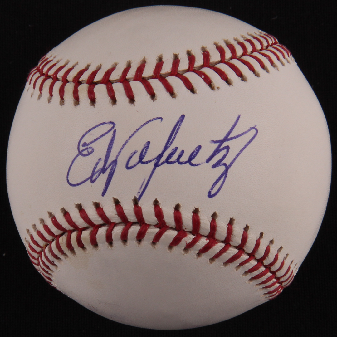 Rawlings Official Major League Baseball. Hand-signed in blue ink pen by Edgar Martinez (Mariners). Please note, there is slight staining on baseball.