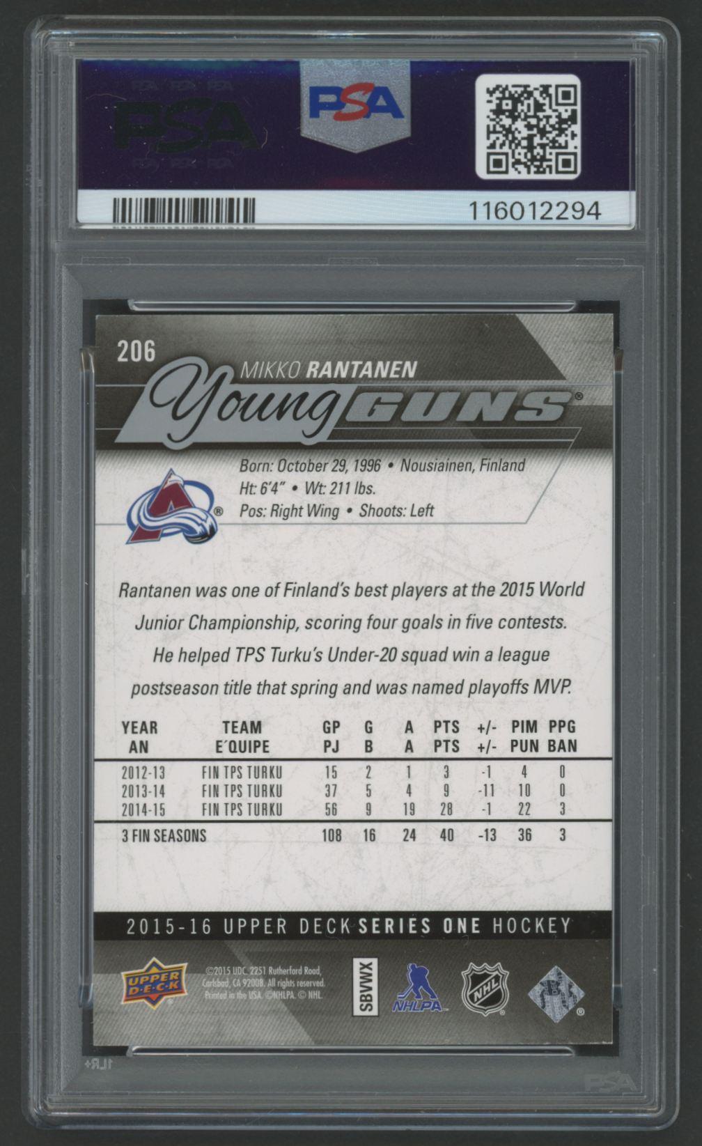 Mikko Rantanen Signed 2015 Upper Deck YG #206 RC (PSA 8 | Auto 9)
