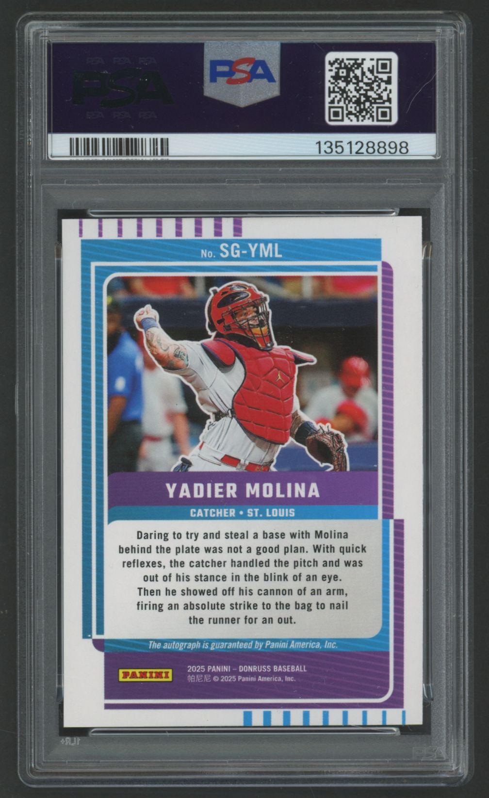 Yadier Molina 2025 Donruss Signature Series Red #SGYML #25/49 (PSA 9)