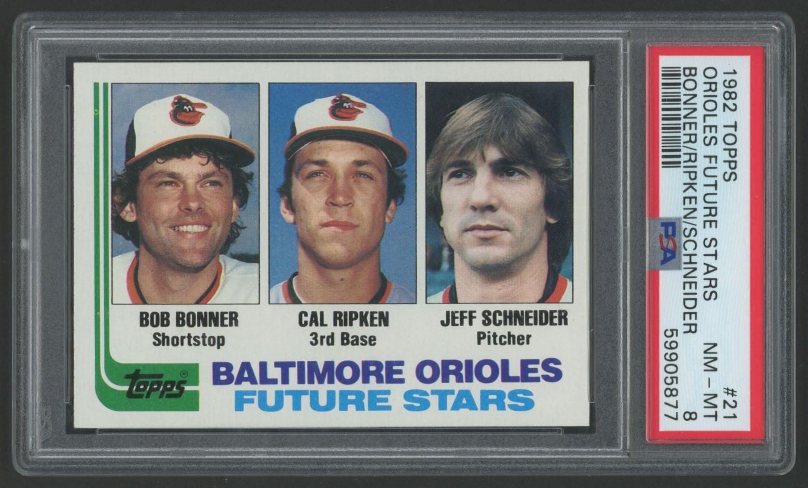 Bob Bonner / Cal Ripken / Jeff Schneider 1982 Topps #21 RC (PSA 8)