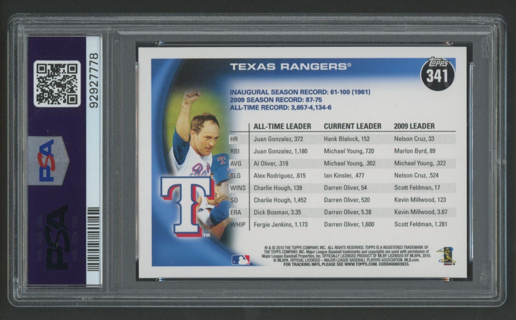 Card has been graded PSA 10. Please see photos for details regarding the condition of the card (Texas Rangers).