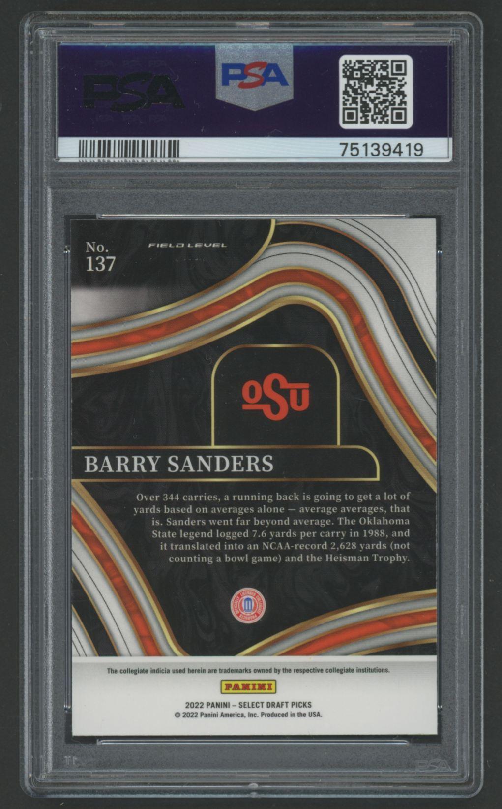 Barry Sanders 2022 Select Draft Picks Blue #137 (PSA 10)